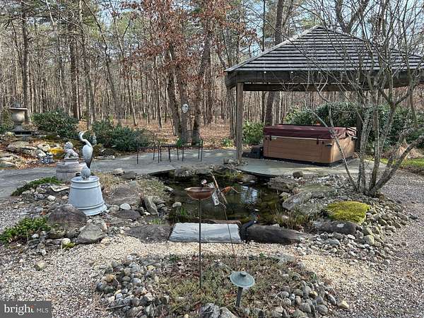 Enjoy privacy and country comfort in this well-maintained custom home on 3.7+/- acres. This exceptional home features a great room, with cathedral ceiling, stone fireplace (gas fired), custom lighting and ceiling fan; breakfast room/ dining area with slider to screened deck; island kitchen, beautifully updated within the past year, featuring custom Quaker sawn oak cabinetry with pullout drawers, granite countertops and newer stainless steel appliances, two first floor bedrooms (with new LVR flooring) and a full bath (nicely updated with tile floor and pedestal sink). The second floor features the loft/ study overlooking the great room and the primary bedroom with recently upgraded en-suite bath (terestone shower walls), walk in closet and slider to new Trex deck (only two years old). The home includes a full basement (with exterior access), tiled laundry room on the first floor and an oversized two car garage. Exterior features the gazebo with hot tub, adjoining fish pond, storage shed (40x14), car port, fenced garden area with irrigation, lawn sprinklers, and more. Major system upgrades include whole house generator with surge protector, brand new hot water heater, new variable speed well pump, and monitored alarm system. Quiet location but minutes away from the Atlantic City Expressway and other major highways. Schedule an appointment today to see and appreciate this special home.