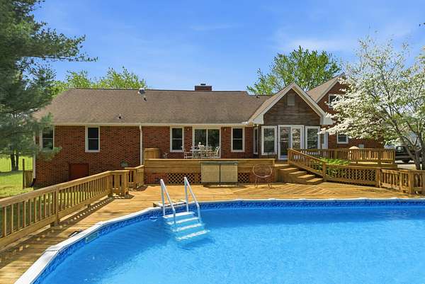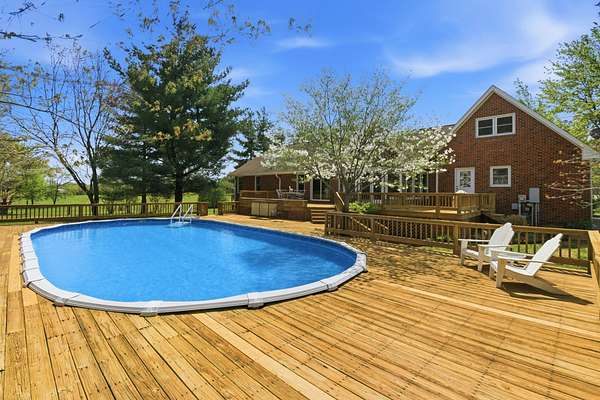 A stocked pond, 40×40 four‑stall barn with electric, water, and dedicated feed/tack room, 20'×50' chicken coop, dog run, RV/boat parking, and a 21'×41' sparkling pool surrounded by extensive multi‑level decking creates a setting where you can work, play, and unwind without ever leaving home.
