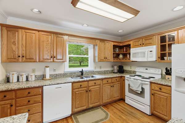 The 2,550 sq ft all‑brick custom residence is warm, light‑filled, and thoughtfully designed for both everyday comfort and refined entertaining. With 3 bedrooms, 2 baths, an open granite kitchen, sunroom overlooking the acreage, abundant windows, and a brick wood‑burning fireplace, the home offers timeless appeal with a touch of country elegance.