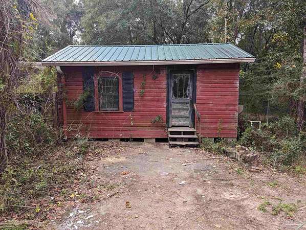 Selling below appraised value -12.23 acres on Mobile Hwy with 721' of road frontage. The property includes a 3/2 brick home, an older workshop and a small fish pond. The owners have done extensive clearing around the home and updates inside the home. Parcels this size are difficult to find in Escambia County and especially property that is near a major highway with easy access to NFCU, I-10, Equestrian Center and so much more. This secluded, private area features a three bedroom, two-bath brick home with an old workshop, a concrete parking area for a large motorhome, a fishpond and matures trees with walking trails throughout. The charming home features so much that is difficult to find in today's market. This early 70's home and the privacy that it affords is seldom seen in the Pensacola area. Update this well-situated home to suite your needs and interest while maintaining the privacy and peaceful setting of this unusual property. All appliances convey however the refrigerator is not warranted. Sellers will consider a flooring allowance and will consider rewiring the home prior to closing with an acceptable offer. Schedule a showing today to see this remarkable opportunity!