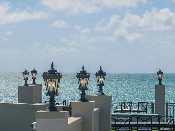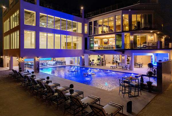 - Bar, Built-In Grill, Hot Tub, Lighting, Outdoor Shower, Privacy Wall/Fence, Rain Gutters, Sandy Beach, Shed, Water Display