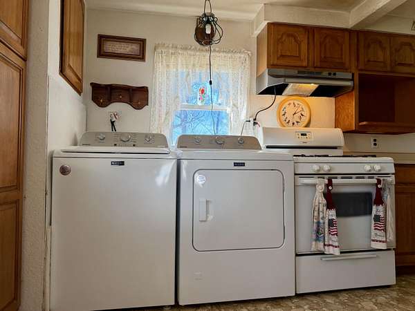 - Dryer, Gas Range, Range Hood, Refrigerator, Washer