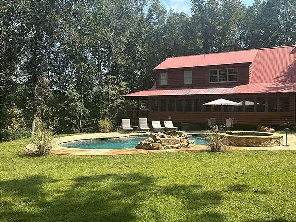 Wow! This one has it all! Beautiful home, sitting on 4.18 private acres. Private salt water gunite pool complete with spa and rock waterfall, built in 2024. Watch the kids play in the pool or jump on the in-ground trampoline while you enjoy smores around the fire pit. Relax on the wrap around rocking chair front porch while drinking coffee and watching the sun rise in the morning. This custom built home offers 3 bedroom and 3.5 baths. Master is located on the main level with ensuite bath, and jacuzzi tub. Upstairs offers loft area overlooking the family room. There are 2 bedrooms upstairs and a bathroom with large space perfect for oversized closet or dressing room. Home is handicap accessible on the main level. Finished basement gives ample space for rental and offers its own private entrance. Full kitchen in the basement with living room, bathroom and possible bedroom. Currently set up with a theatre, great for movie nights while relaxing by the fire. 2 fireplaces with wood burning stoves to heat the home. Custom cabinets throughout. Great room offers 25+ ft ceiling. Large 2 story barn on the property with loft space upstairs, ready for all your farm equipment or can be used as a workshop. TOO MANY FEATURES TO LIST! Country living at its best! Only a short drive to 985 and all the convenience of the city.