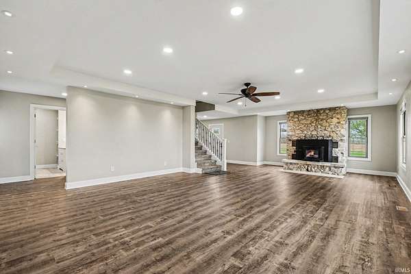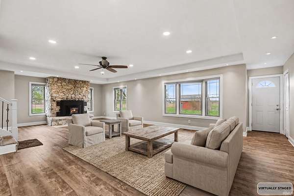 Welcome to this beautifully updated and exceptionally spacious home, offering just under 4,700 finished square feet on 2.3 acres. Designed with both comfort and functionality in mind, this 4-bedroom, 5-bath residence features expansive living areas, abundant storage, and upgrades throughout. The heart of the home is the well-appointed kitchen, showcasing Amish custom cabinetry, granite countertops, a breakfast bar, and all appliances included—perfect for everyday living and entertaining alike. The inviting living room is anchored by a gas insert fireplace, creating a warm and welcoming atmosphere. This home offers two primary en suites—one conveniently located on the main level and another upstairs—providing flexible living arrangements. Additional highlights include two laundry rooms, a FROG (family room over the garage), and two separate spaces ideal for home offices, hobby rooms, or creative studios. Recent updates include all new windows, a new septic system (2023), and dual furnaces and central air units for efficient climate control. The partially finished lower level adds even more versatility with a full bath. Outdoor amenities are equally impressive, featuring a large stamped concrete patio with a covered area, ideal for relaxing or entertaining. The property also includes a 2.5-car garage, a new 48x36 outbuilding, and a 30x50 barn—offering ample space for storage, hobbies, or additional workspace. With its generous size, thoughtful layout, and extensive updates, this property delivers a rare combination of space, comfort, and functionality.