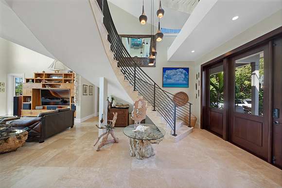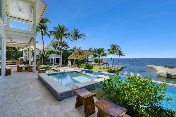 Welcome to Serenity Cay, an exquisite Balinese-inspired estate where tranquility and luxury meet the endless beauty on the Florida Bay. A true masterpiece of engineering and design, this sprawling waterfront residence on nearly 4 acres offers an unparalleled blend of tropical elegance, sophisticated craftsmanship, and modern luxury. An expansive infinity-edge pool blends seamlessly into the sparkling waters of the bay while lush gardens create a serene oasis. The home's architecture showcases graceful, custom finishes and rich hardwoods, all hallmarks designs that evoke the spirit of the Islands. Spanning over 6,900 square feet, the interior is a seamless fusion of open-concept living spaces and private retreats. Soaring vaulted ceilings and vast windows invite abundant natural light and spectacular views of the bay, creating an indoor-outdoor flow. The primary suite serves as your personal sanctuary, complete with private terrace, spa-inspired bathroom, and walk-in closets fit for a connoisseur of fine living. Each guest has direct access to outdoor spaces and views. A bonus, versatile bunk room/media center sits just off the west wing of the home. The charming guest house is the perfect complement to the main home, nestled in its own secluded on site location this delightful addition exudes a warm, welcoming ambiance ideal for hosting guests, or as a private office or creative studio. This downtown Islamorada estate in an incomparable location; walking distance to shopping, dining, and local culture, also has appeal that extends to those with a passion for the great outdoors. Two protected docking basins and boat lift, sandy lounging beach, expansive outdoor lanai and outdoor kitchen offers the ideal space for entertaining or enjoying a quiet evening watching the sunset. Fly the seaplane in or land the helicopter. Premier boating access just moments away from the Intracoastal waterway and Ocean channels. Serenity Cay is not just a home, it's an experience.