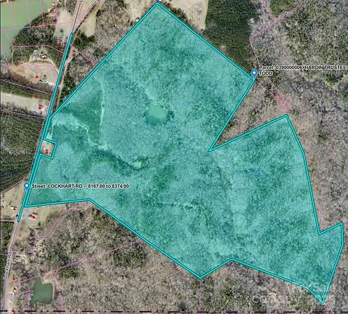 Your own private park! A true slice of heaven, homestead & sportsman's paradise w/ deer, turkey, rabbit & fishing less than 1-hr SW of Charlotte! 195.51 acres, various terrain, appx 70% hardwood & 30% pine, appx 4 acres of open yard & fields. 1.5 acre pond w/ new pier (Oct 2025), concrete picnic table, dam & spillway, and stocked with largemouth bass & bluegill. Appx 2.2 miles of hiking & ATV trails. Appx 5,185 ft (0.98 mi) of creeks with 3 new bridges (July 2025). Appx 1,090' paved road frontage on Hwy 49. Includes a charming 1,008 sq/ft 1BR/1BA cabin w/ kitchen, walk-around chimney w/ open fireplace & wood stove on opposite sides, covered open front porch & screened side porch. Brand new well system & new well house installed May 2025 & septic tank. Duke Power utility. 30A power hookup for camper. 2-story pole barn w/ water supply & open, double-bay tractor shed. 650 sq/ft cinderblock storage bldg w/ water & wired for power. Zoned for farm use, low taxes!