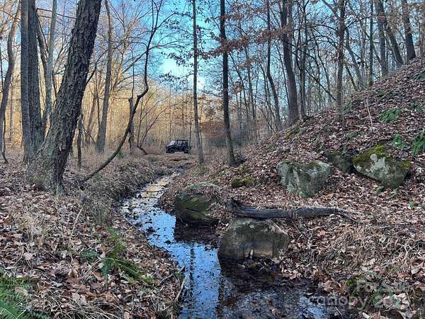 Your own private park! Zoned for farm use, low taxes! A true slice of heaven, homestead & sportsman's paradise w/ deer, turkey, rabbit & fishing less than 1-hr SW of Charlotte! 195.51 acres, various terrain, appx 70% hardwood & 30% pine, appx 4 acres of open yard & fields. 1.5 acre pond w/ new pier (Oct 2025), concrete picnic table, dam & spillway, and stocked with largemouth bass & bluegill. Appx 2.7 miles of hiking & ATV trails. Appx 5,185 ft (0.98 mi) of creeks with 3 new bridges (July 2025). Appx 1,090' paved road frontage on Hwy 49. Includes a charming 1BR/1BA cabin w/ kitchen, walk-around chimney w/ open fireplace & wood stove on opposite sides, covered open front porch & screened side porch. Brand new well system & new well house installed May 2025 & septic tank. Duke Power utility. 30A power hookup for camper. 2-story pole barn w/ water supply & open, double-bay tractor shed. Cinderblock storage bldg w/ water & wired for power.
