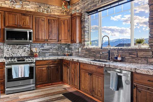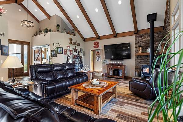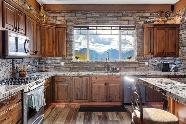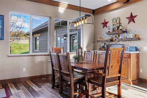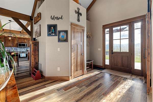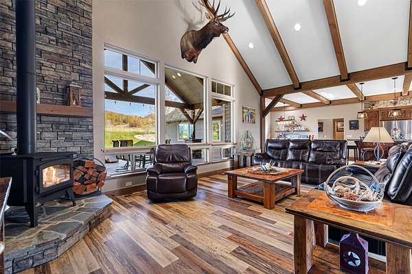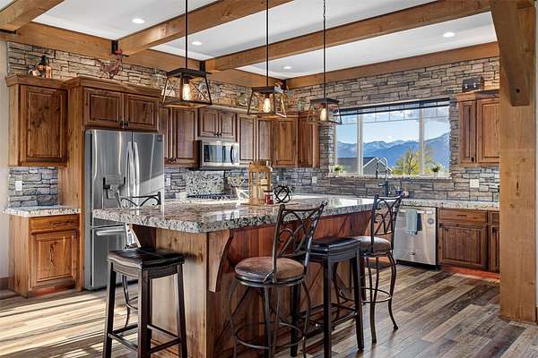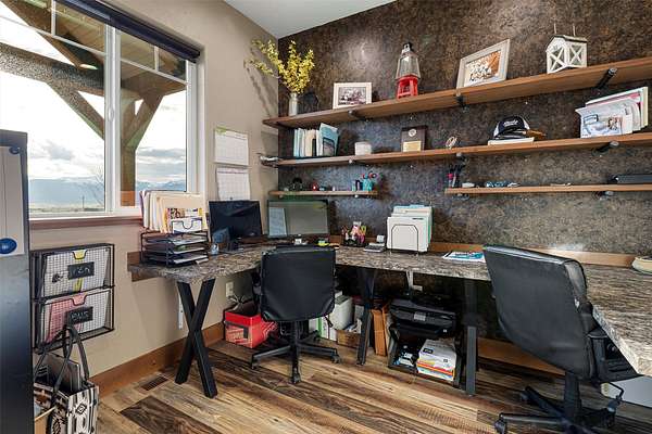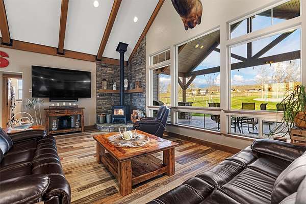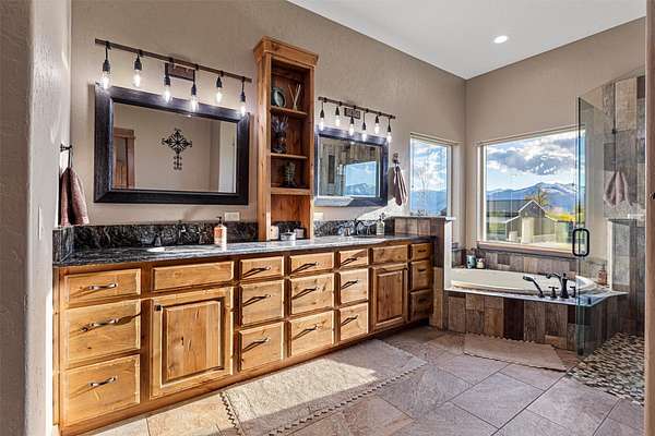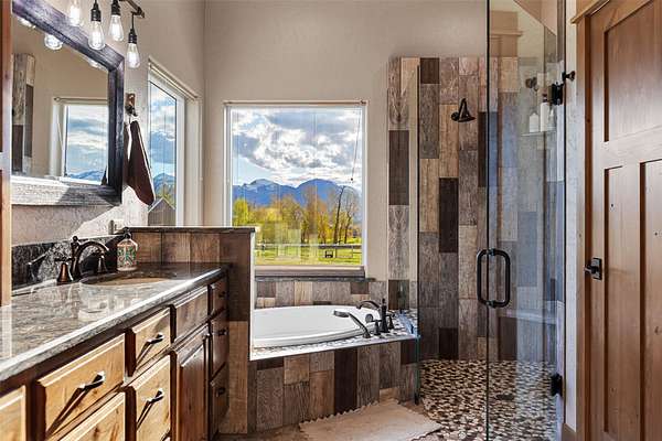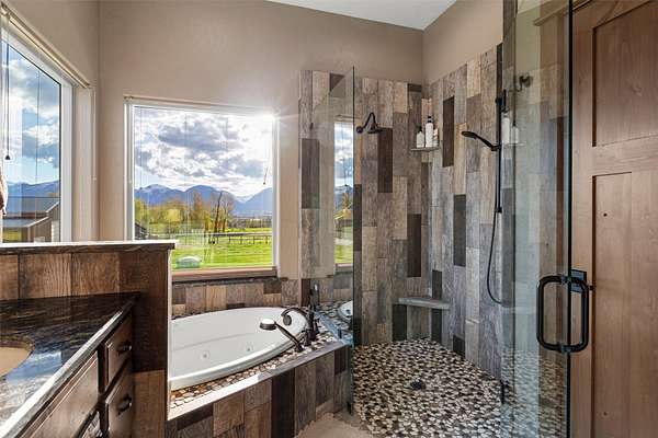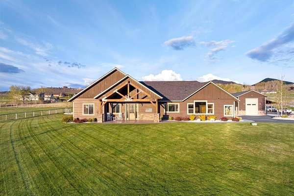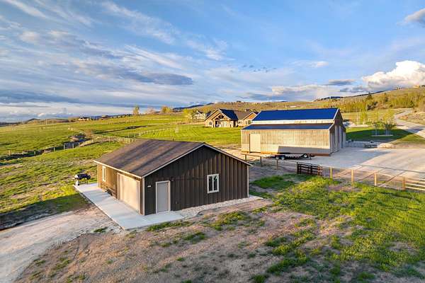 Welcome to your own private estate on just over 8 acres of breathtaking beauty! This exquisite property is divided into 2 separate parcels, which are perimeter fenced and crossed fenced. Each parcel offers its own unique charm and functionality. The main attraction - a stunning custom-built home constructed in 2020, boastin 3 spacious bedrooms, 2.5 bathrooms, plus an office in the luxurious living space. As you enter, large windows flood the home with natural light, inviting the beauty of the outdoors in. Marvel at the vaulted ceilings adorned with exposed beams creating an atmosphere of grandeur and warmth. The attention to detail is evident in every corner, from the beautiful flooring to the granite countertops and stunning stone backsplash that extends to the ceiling in the kitchen. The primary bedroom, located on the south end of the home, complete with his and her closets, a luxurious jacuzzi tub, and a pebbled floor walk-in shower, providing the ultimate relaxation and comfort. 2 additional bedrooms on the north end of the home provide ample space for entertaining guests. Convenience meets functionality with the attached 3-car garage, offering plenty of space for vehicles and storage. The amenities don't stop there - a detached garage/shop with a trophy room awaits, providing the perfect space for entertaining or pursuing hobbies. Plus, a 4-bay shop/barn offers ample storage for equipment and tools, ensuring you have everything you need right at your fingertips. As if the interior wasn't impressive enough, the exterior is just as impressive with the immaculate landscaping, outdoor living spaces, and the stamped concrete and curved cement work. The additional parcel is home to a charming 2 bedroom, 1 bathroom guest house, complete with its own well and septic system, providing privacy and independence for guests. The constant highlight of this property are the views of the Bitterroot Mountains which are simply surreal. Don't miss your opportunity to own this idyllic piece of paradise.