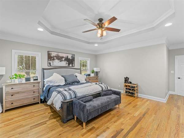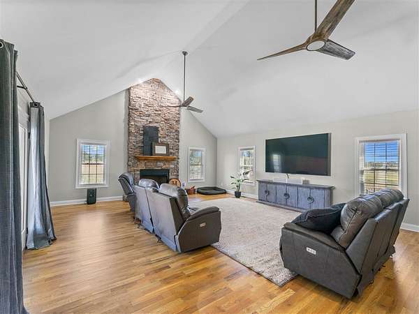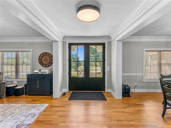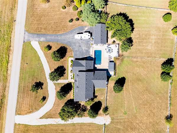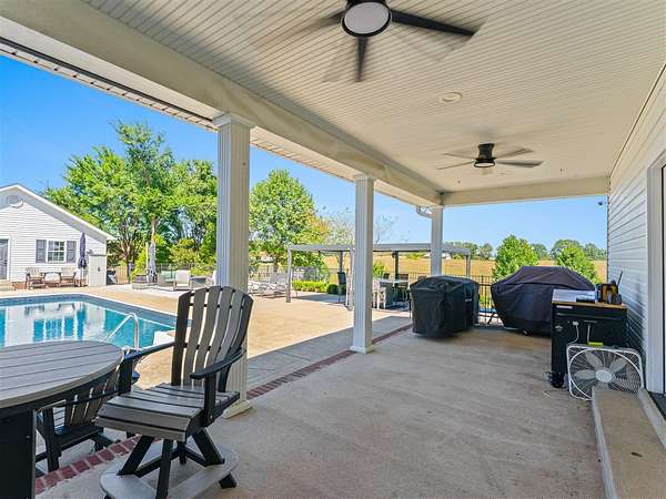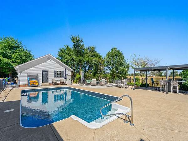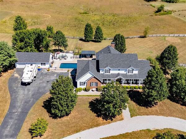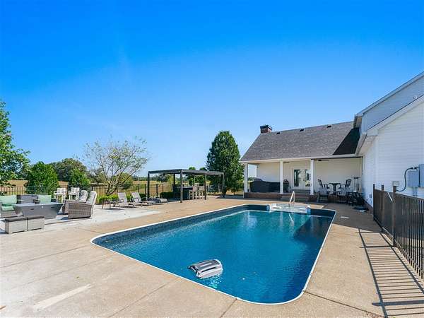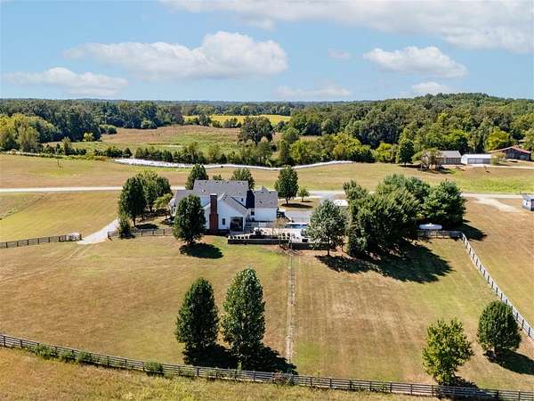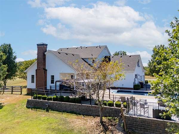 This beautifully updated 4-bedroom, 3.5-bath home offers the perfect blend of comfort, style, and space. Featuring a 2-car attached garage plus an additional 2-car detached garage, this property is designed for convenience and versatility. Inside, you'll love the fresh updates throughout, including new paint, refinished hardwood floors, new carpet, updated light fixtures, blinds, exterior doors, and a newly designed master closet by California Closets. The spacious layout includes a formal dining room, office space, large utility room, and cozy fireplaces in both the living room and the master bedroom. Step outside to your own private retreat with an in-ground pool, pool house, brand-new pool liner, fenced backyard, and a covered front porch perfect for relaxing. A new security system adds peace of mind. Nestled on 3.02+- acres in a serene county setting, this home truly has it all--indoors and out!