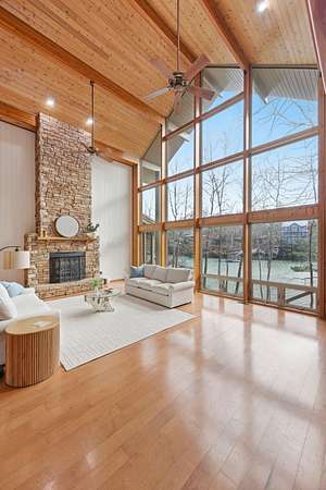 Est $8,269/moSmith Lake (Brushy Creek) An absolutely incredible and rare opportunity to be tucked away in the woods! This stunning custom Lindal home is situated on 3 lots totaling over 970 feet of waterfront! Almost unheard of! Home has 5+ bedrooms, 3 baths, and all the qualities that make a true lake home. Amenities include a detached garage, sleeping porch, screened porch, fireplace, and rustic materials.