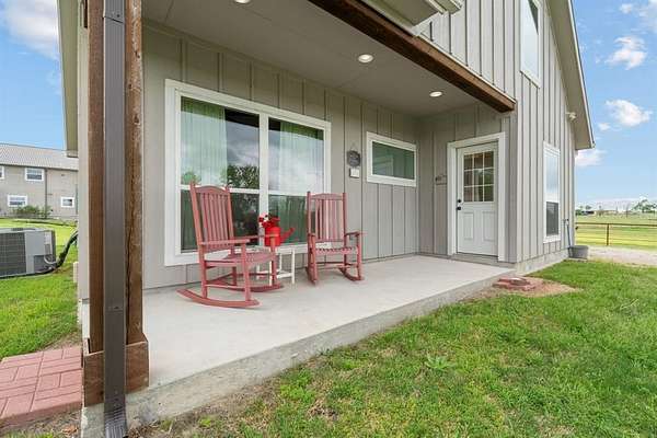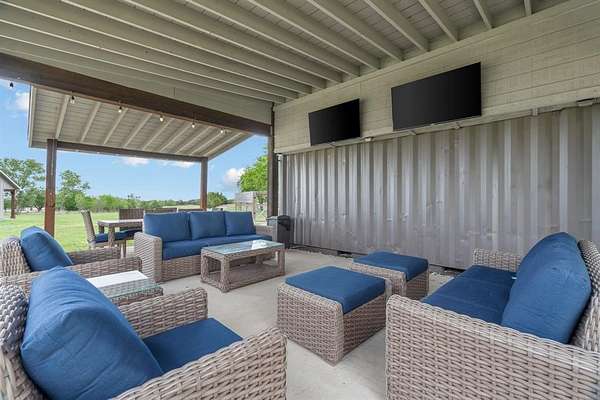 Both homes feature inviting front and back porches. Enjoy unforgettable Texas sunsets from the rooftop deck atop a shipping container w- added storage. Outdoor living continues with a covered patio, electric shade screen, and sport court, and firepit.