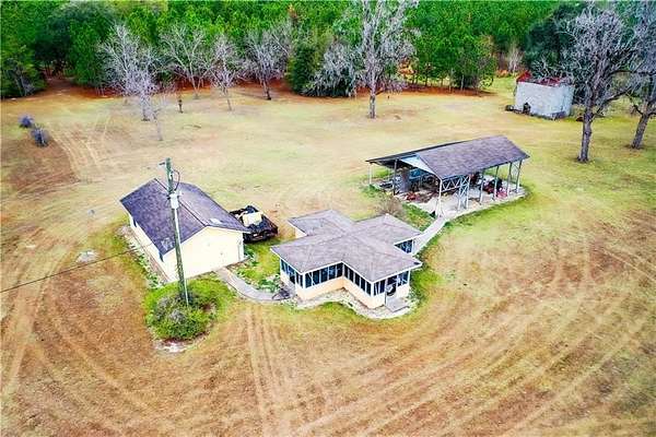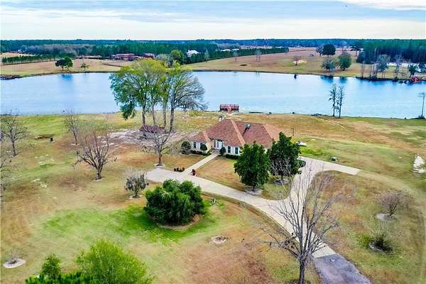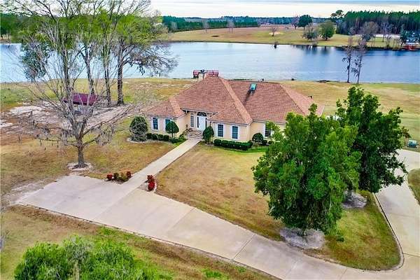 Welcome to this beautiful and well kept one-owner custom home offering over 2400 sq feet of living space and nestled privately on almost 29 acres of scenic land. This peaceful retreat sits on a lake with a newly rebuilt dock and is surrounded by mature pecan trees and pines, creating a truly serene setting. As you travel up the long private driveway, you are greeted by a charming 3 bedroom, 3 bath stucco home with abundant concrete parking. Step inside to a spacious living area featuring carpet, built-ins, a wood burning fireplace, crown molding, and high ceiling that creates an inviting atmosphere. The kitchen is well-appointed with granite countertops, newer oven, cooktop, microwave, refrigerator, dishwasher and trash compactor. A built-in desk area/coffee bar, eat-in bar seating and tiled breakfast area make this space both functional and welcoming. Adjacent is a formal dining room with carpet. The split floor plan provides privacy for the master suite, which offers carpet and a tiled master bath complete with double vanities, a jacuzzi tub, separate shower and walk-in closet. The additional bedrooms are generously sized with good closet space and carpet. A guest bathroom includes a tub/shower combo. Off the living room, enjoy a largen enclosed glass sunroom showcasing spectacular lake views. From there, step onto an additional screened-in back porch - perfect for relaxing and taking in the water views as well. The tiled laundry room includes cabinetry and a deep sink for added convenience. The insulated 2-car garage provides storage space and connects to a mudroom featuring the third bath - ideal for cleaning up after outdoor activities. Outside, the property continues to impress with an open shelter/equipment building, another building/pond house with a bath, a garden area with water supply and a double covered carport. The home is serviced by a deep well and septic. Recent upgrades include new roof (2024), 2 newer HVAC units and a whole home Generac generator (2025/800 gallon propane) This meticulously maintained property offers privacy, space, and breathtaking lake views - perfect for those seeking tranquility and country living with modern comforts. This home truly has it all and is ready for its next owner. Call today!!!