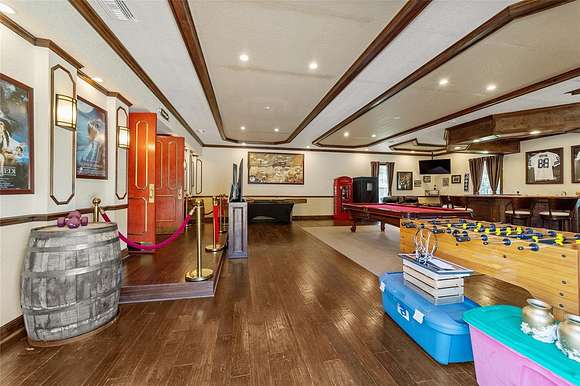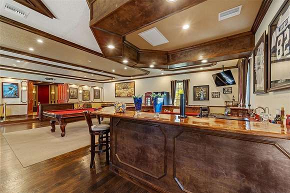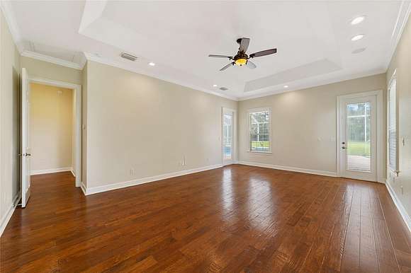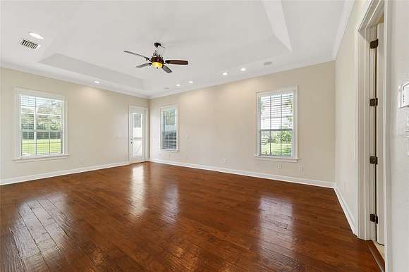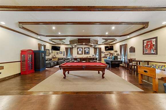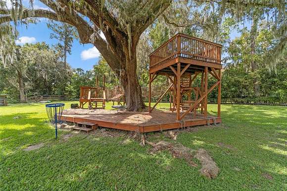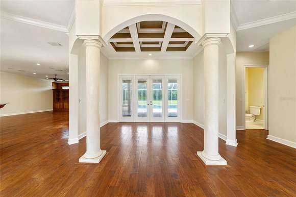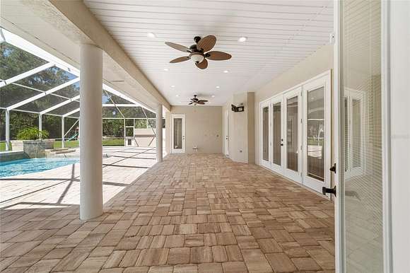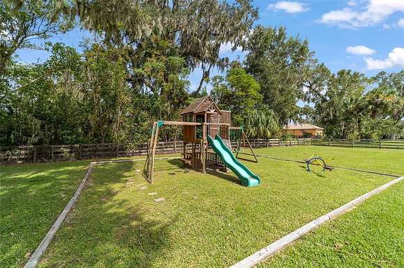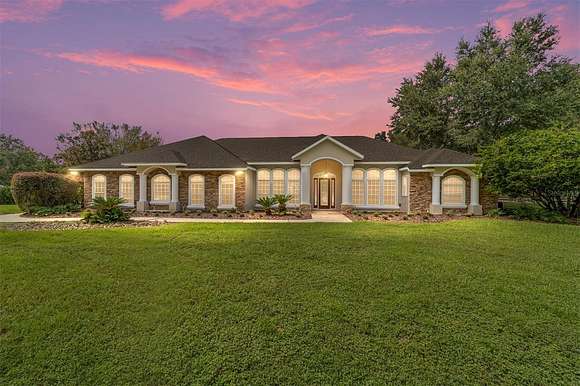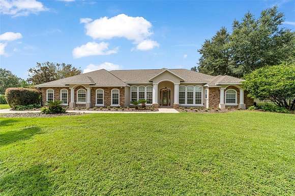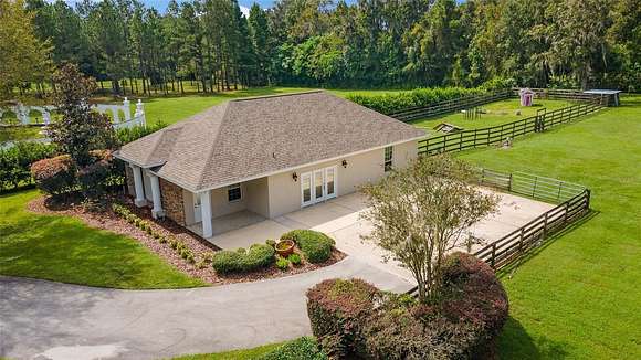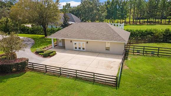 This stunning property nestled on 3.41 acres within a gated, horse-friendly community in SE Ocala combines elegance, comfort, and the opportunity to have your 4 legged friends right in your own backyard! Between the main home (3506 sq ft) and the second home (1645 sq ft) there is a combined living space of 5151 sq ft. The main home features 4 bedrooms and 3.5 baths, designed with an open floor plan that includes a family room centered around a charming stone fireplace, that flows seamlessly into the kitchen with wood cabinets and a center island surrounded by granite countertops. A cozy breakfast space just off the kitchen looks out to the newly remodeled pool and lanai. Inside, you'll find wood flooring throughout the main living areas. This home also has a spacious primary suite, complete with two walk-in closets featuring built-ins, and a primary bath with travertine tile, dual vanities, a soaking tub and a separate shower. Best of all, it has direct access to the pool and lanai. All 3 guest bedrooms are good sized and have ample closet space. The main home also includes a formal living and dining room, plus a separate office/study. Accessible from multiple points in the home, the newly remodeled screen enclosed pool with waterfall and water features is surrounded by new pavers and covered lanai, making it the perfect space for relaxing and entertaining. Pool has electric heater and salt system. Adding to the charm, is an additional 1,645 sq ft detached home, which is currently set up as an entertainment space, complete with a built-in bar, spacious living area, and a separate theater room. This versatile area could easily be transformed into a guest house, with a half bath already in place. Recent updates include fresh paint inside and out, a new roof in 2022, updated air-conditioning units (5 ton in 2021 and 2.5 ton in 2018), along with new duct work. Equestrians will appreciate the 4-board fencing, making this property as horse-friendly as it is beautiful. This is the perfect spot for those seeking luxury and functionality in a picturesque country setting.