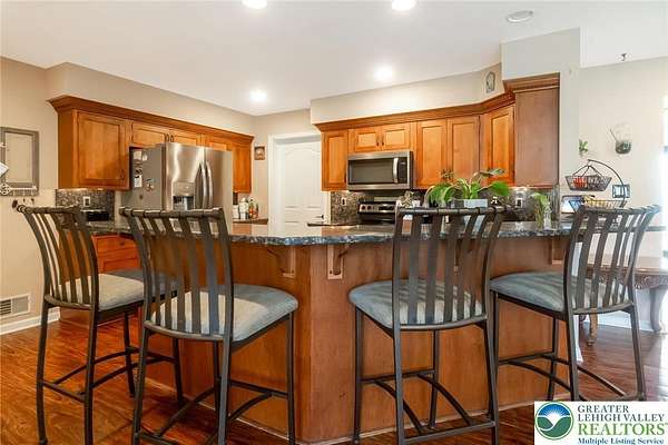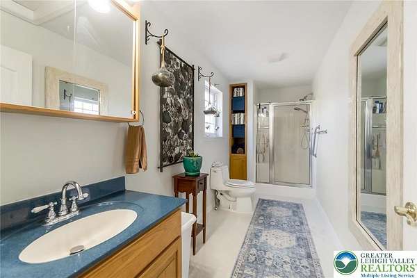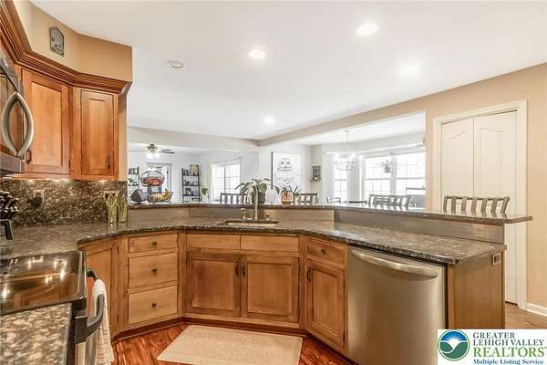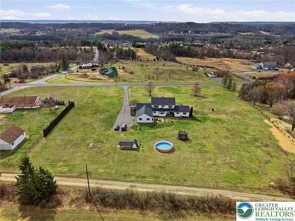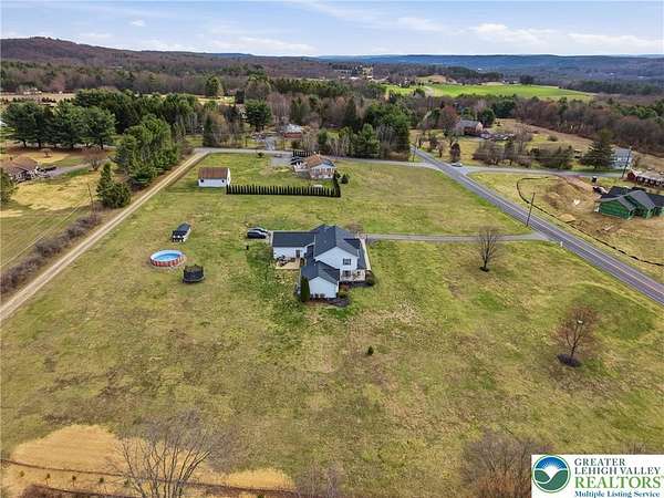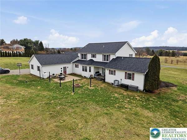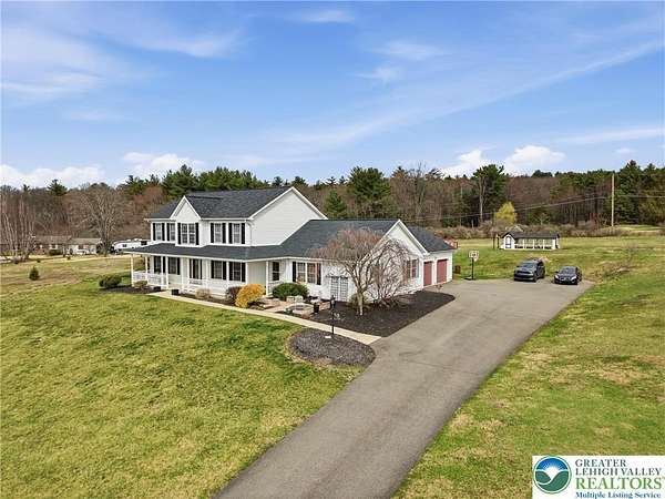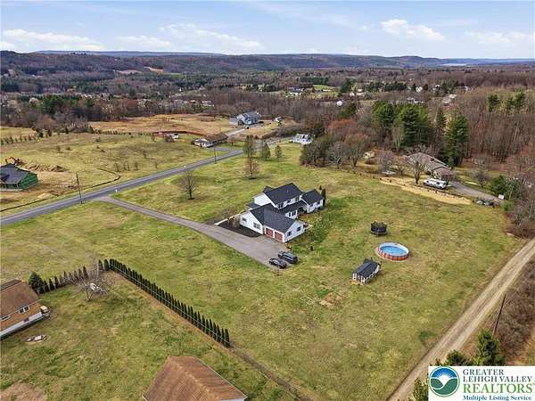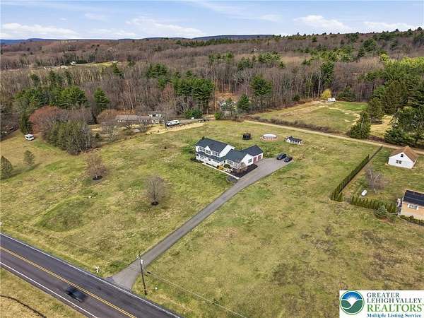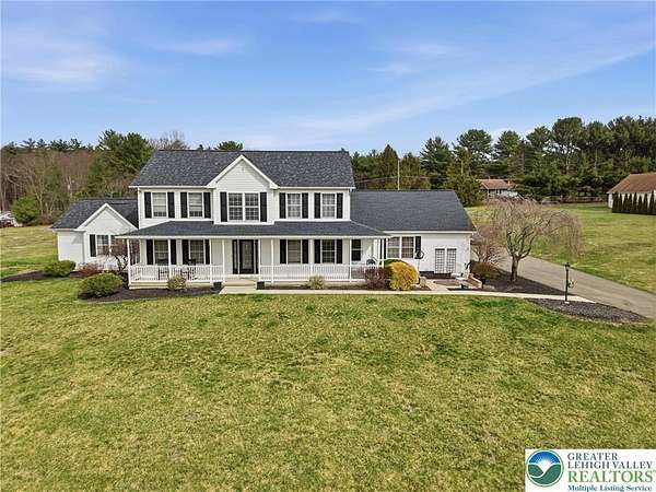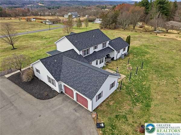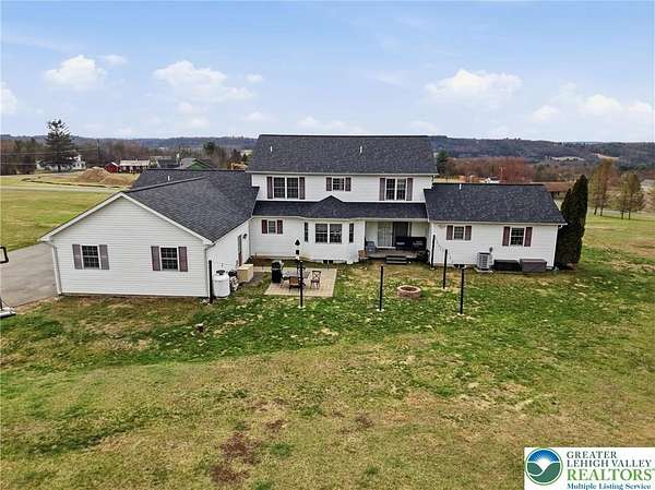 Take a look at the breathtaking views of the rolling hills and valley from this spacious 5 bedroom, 4 bathroom Colonial set on just over 3 acres in Towamensing Township. Offering over 3,500 square feet above grade, this home delivers a flexible layout designed for a variety of living needs. The main level features a large living room, open kitchen with granite countertops and maple cabinetry, a bright dining area, and a dedicated laundry/mudroom. A standout feature is the 1st floor primary suite with private bath and walk-in closets, along with a home office for added convenience. One of the most valuable features of this property is the fully equipped in-law suite complete with its own living room, kitchen, bedroom, and full bath-ideal for extended family or multi-generational living. The second floor offers generously sized bedrooms along with an oversized bonus room that can serve as a second family room, playroom, media space, or potential additional bedroom. Recent upgrades include a new 50 year roof in 2023, two water heaters in 2021, and a brand new heat pump with central AC in 2025. Outside, enjoy a large yard with patio area and fire pit, perfect for entertaining or relaxing while taking in the surrounding views. Additional features include a 2-car attached garage and whole-house generator. Conveniently located near Route 209, PA Turnpike 476, Beltzville Lake, Blue Mountain, and local amenities.