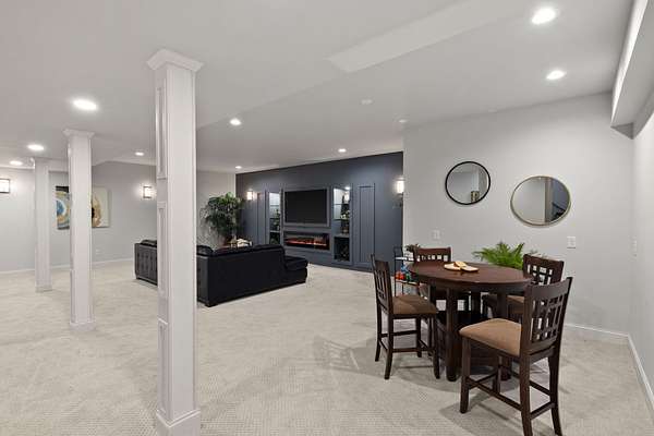 The expansive finished basement (completed in 2023) is an entertainer's paradise, featuring a second theater area, plumbing ready for a custom kitchen and bath, and a dedicated home gym space so your fitness goals are always within reach.
