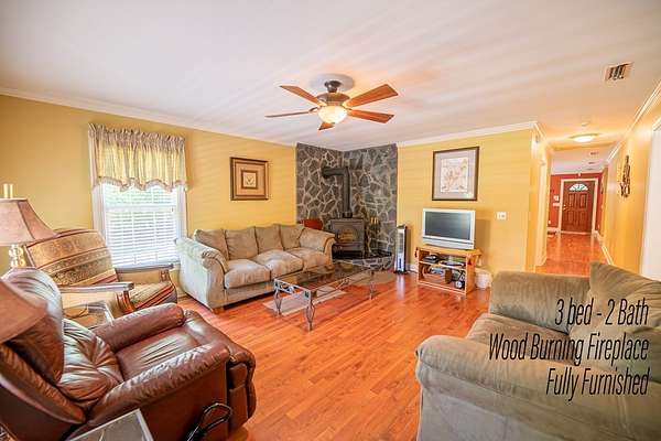 Nestled on nearly 2 serene, wooded acres near Lake Seminole in Donalsonville, GA, this meticulously maintained one-owner 3-bedroom, 2-bath home is a rare find. Built in 2006, this 1,650 sq ft single-story cottage blends modern convenience with rustic charm, offering ample space for a large garden and livestock--perfect for sustainable living. The thoughtfully designed split floor plan ensures privacy, featuring a spacious master suite with a cozy sitting area, generous walk-in closet, and a spa-inspired bathroom complete with a separate shower, double vanity, and relaxing jacuzzi tub. Throughout the home, you'll find beautiful ceramic tile, wood, and laminate flooring, complemented by recessed lighting and a warm, inviting fireplace that serves as the heart of the living space. The well-appointed kitchen is a delight, equipped with a central island, built-in microwave, dishwasher, range hood, refrigerator, and sleek stainless steel appliances--ideal for preparing homegrown meals. Step outside to enjoy the tranquil screened porch or covered patio, perfect for morning coffee or evening relaxation. This turnkey property comes fully furnished and includes a detached workshop for projects or storage, plus a double carport and parking pad for convenience. Ideal for those who cherish Lake Seminole's recreational allure but seek more land and privacy than most waterfront properties provide, this newer home prioritizes space over a lakeside location. Located just minutes from the well-known Big Jim's Restaurant, Lake Seminole State Park, and several public boat launches, it offers the best of both worlds--peaceful seclusion and easy access to local favorites. Move-in ready with immediate occupancy, this countryside retreat is calling your name. Schedule a private tour today and see it for yourself!