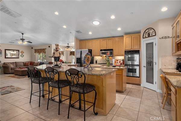 Breaking News! Welcome to 8289 Alta Mesa Rd, located in the exceptional West Oak Hills community. Discover your dream-built, custom home oasis, tailored to complement your luxurious lifestyle and entertaining needs. This home has been meticulously designed and upgraded, including custom front landscaping. This incredible home provides luxury living at its finest. From lovely curb appeal to your oasis backyard with unobstructed breathtaking views of sunsets and sunrises! As you approach your circular driveway, enter through the dual glass doors and be immediately met with grand glass windows presenting a view of a resort-style courtyard and backyard, including a fully equipped backyard island kitchen, pool, spa, and covered patio area. At the heart of the home lies a chef's gourmet kitchen you want to write home about, featuring granite countertops and an oversized island with full seating, stainless-steel appliances, dual oven, plenty of cabinetry, a nook area, and pantry. Ample counter space is available for food prep, and buffet-style presentation for gatherings. Opens to the family room & game room, ideal for entertaining. The family room offers a grand dry-stacked rock fireplace, a raised hearth, mantle, and high-efficiency, zero-clearance wood-burning fireplace that radiates heat for the surrounding areas. The spacious game room provides plenty of windows for natural lighting & backyard view. It includes a wet bar with mini refrigerator and a pass-through window. Dual French doors provide access to the courtyard, outdoor kitchen, and pool. The luxurious primary Master Suite showcases a serene and spacious oasis including dual French doors to backyard access, a walk-in closet, and a primary bathroom. The master bathroom includes a Roman jacuzzi tub, dual sinks, and a large shower, all adorned with custom tile. Off the entry is a formal dining area for those special evenings and Den. Two additional bedrooms are generous in size. Your Resort-designed backyard features a large courtyard, a full-size pool and spa, and a patio cover that wraps around the courtyard area. It is fully equipped with an island with a 4-burner barbecue, mini refrigerator, fire pit, and sitting area. For the sports/outdoors enthusiast, golf area to Tee Off with open space, batting cage structure & plenty of room for your toys. But wait, there is more! 3-car garage, concrete driveway, central vacuum, custom tile flooring, recessed lighting, ceiling fans throughout, large shed.