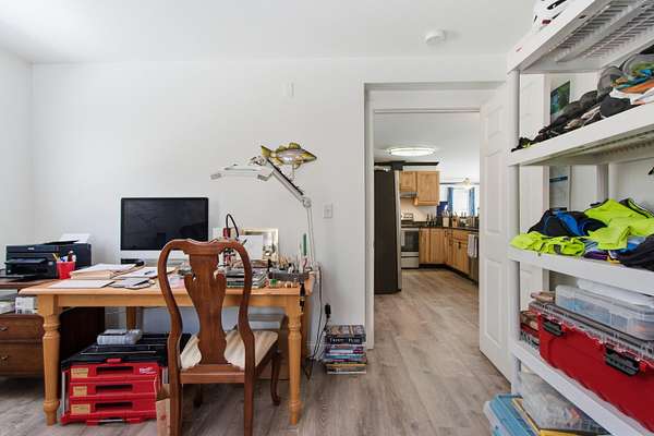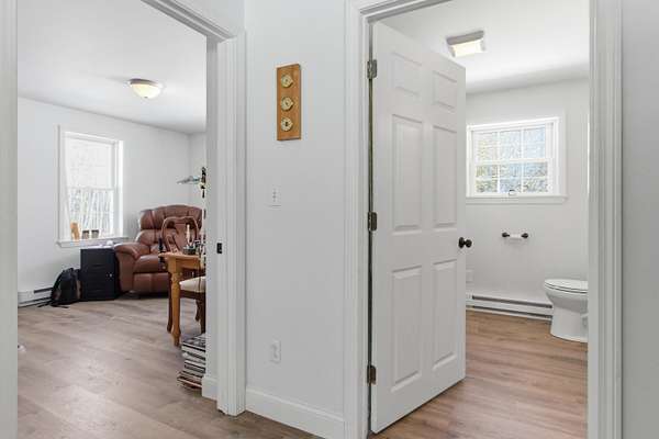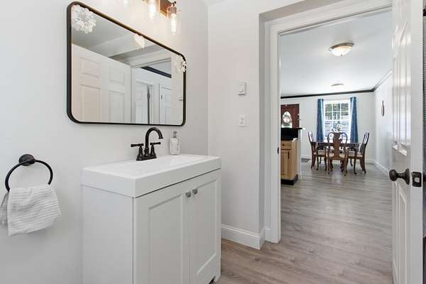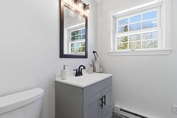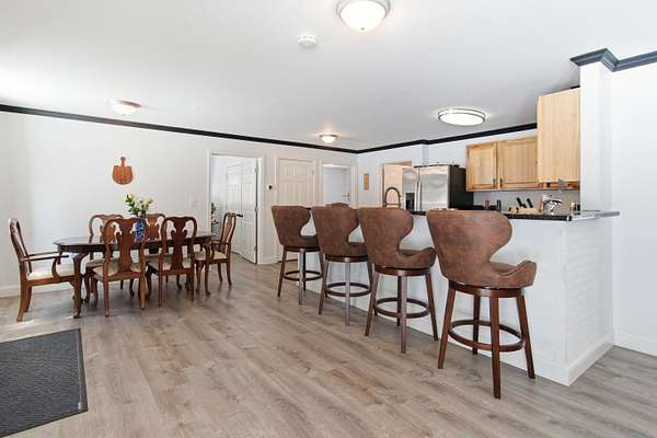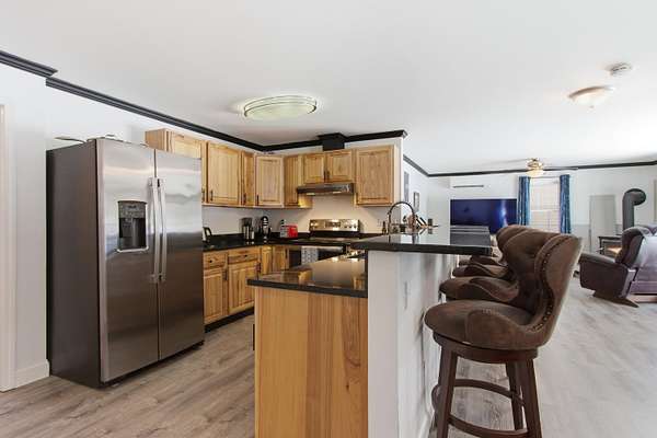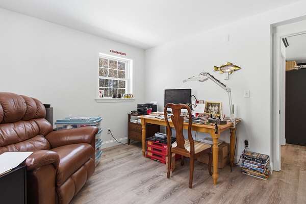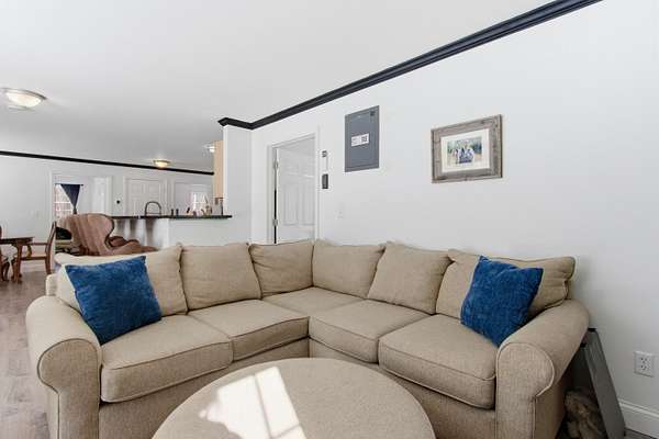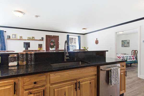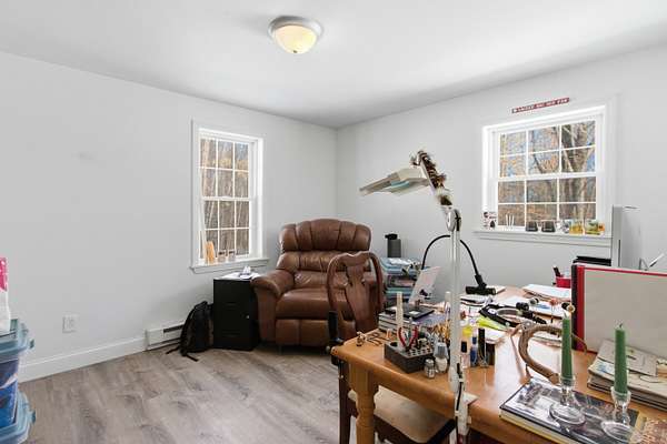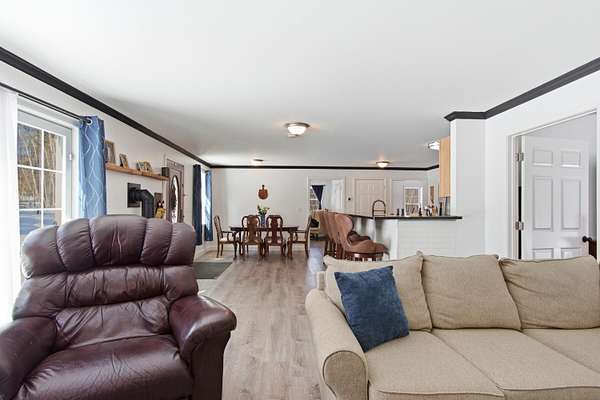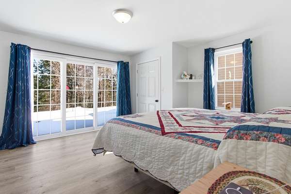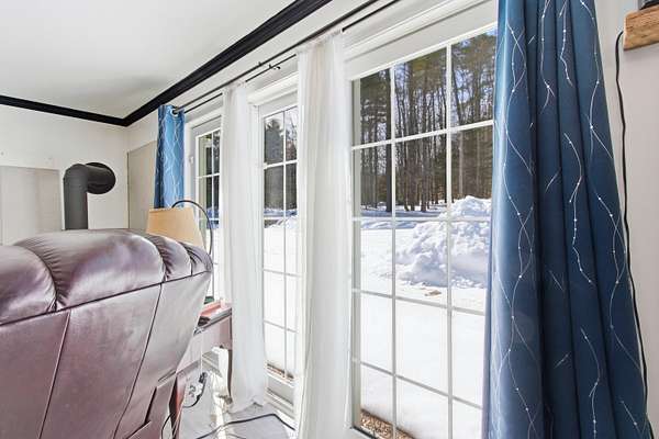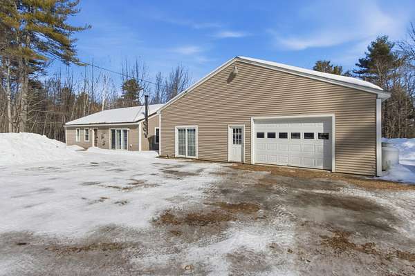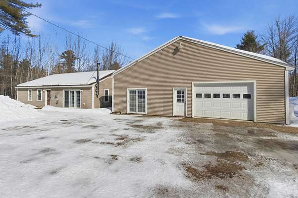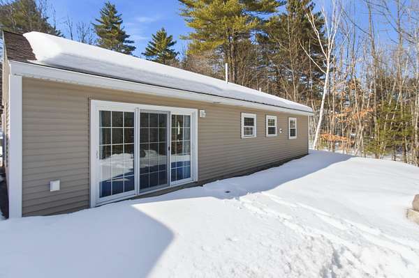 This approximately 1,970 square foot house provides one- level living with three bedrooms and two bathrooms. The primary bedroom features abundant natural light and hardwood flooring, creating a serene and peaceful atmosphere. The spacious bathroom includes a modern vanity and ample natural lighting, providing a relaxing oasis. The property is equipped with a whole-house solar system, providing energy-efficient power and reducing environmental impact. It is located a short15 minutes from Bridgton and 1 hour from Portland, with abundant access to nearby amenities and attractions. The home's peaceful wooded setting offers a scenic winter retreat, with a spacious lot and ample parking. A detached garage and spacious exterior allow for convenient storage and multiple vehicles or workshop. The surrounding serene woodland creates a tranquil and private environment. The home's open concept design features a spacious kitchen with ample cabinetry, a generous dining area, and an expansive layout. Elegant wood furnishings and expansive windows showcase the views of the scenic woodland, enhancing the home's overall charm and warmth.