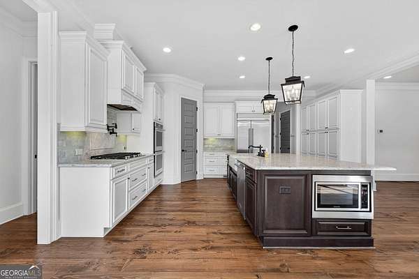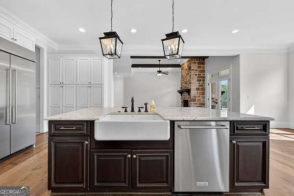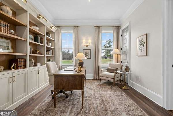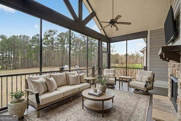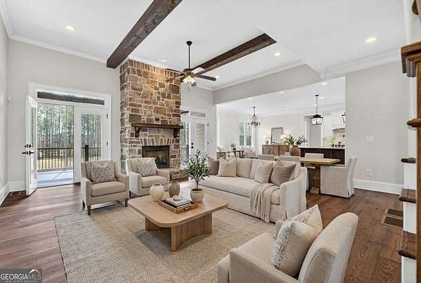 Welcome to an extraordinary private estate at 829 Christopher Rd in Sharpsburg, where refined design meets peaceful country living on 5+ breathtaking acres - just minutes from Peachtree City. This stunning 5-bedroom, 5.5-bath home with 6,467 square feet offers a perfect blend of luxury, comfort, and versatility. From the moment you enter, you're greeted by gorgeous hardwood floors, fresh neutral paint, and thoughtfully curated finishes that create a warm, modern French country feel throughout. The heart of the home is a cozy yet elegant family room featuring exposed wooden beams and a striking fireplace, flowing seamlessly into a generously sized breakfast area and open living spaces designed for both everyday living and entertaining. The main-level primary suite is a true retreat, complete with a coffered ceiling, spa-inspired bath, soaking tub, massive dual-entry walk-in shower, and two custom walk-in closets. Entertain with ease in the beautiful, coffered ceiling dining room, perfectly sized to seat 12, or unwind on the inviting covered porches - ideal for rocking, swinging, and taking in serene views of your expansive property. Upstairs, you'll find three spacious bedrooms, along with a private loft area with its own living room, ideal for a home office or flex space, plus a large media/playroom. With so many rooms, there's flexibility to create additional offices, a library, or hobby spaces. The laundry room is truly exceptional - oversized, beautifully designed, and functional enough to be a space you'll actually enjoy spending time in. The mostly finished basement expands your living options even further, offering a large additional family room, space for a potential wine room, and ample unfinished area perfect for storage or a home gym. A boat door provides easy access for lake days, recreational vehicles, or equipment for exploring your acreage. Outside, the possibilities are endless. With conceptual pool plan completed, you're ready to create your dream outdoor oasis. The property also features a massive 40x80 workshop, ideal for car enthusiasts, a barndominium conversion, storage, or the ultimate he/she shed with an additional 6.23 acres also available for purchase that adjoins the property to the left and a total package price for that would be 1,750M. The additional acreage and steel building will not be sold separately. Located in the peaceful countryside of Coweta County, yet minutes to Peachtree City, this property offers the best of both worlds-privacy, space, and convenience. Hurry and schedule your private showing - this one won't last long at this price.