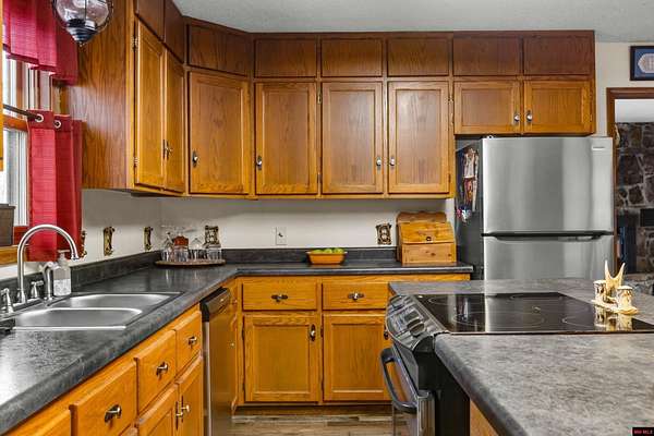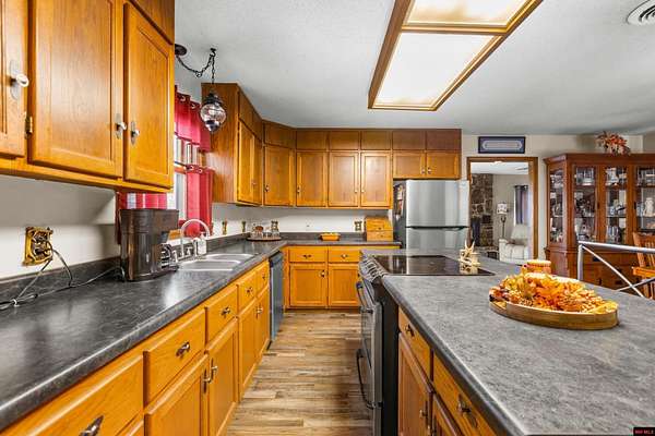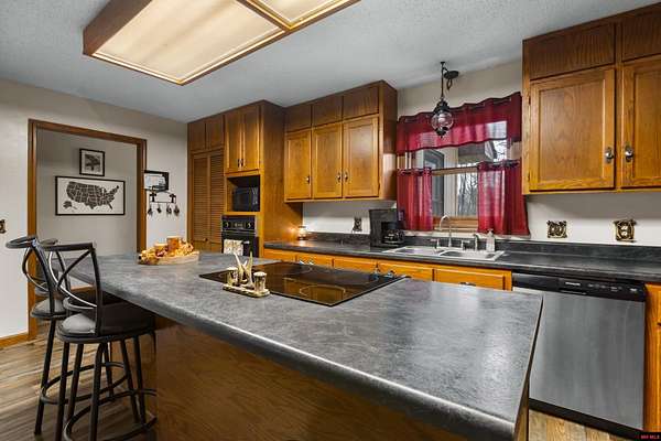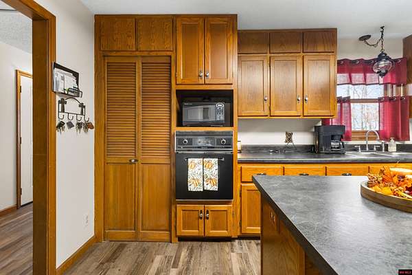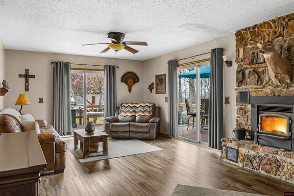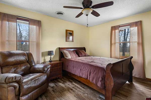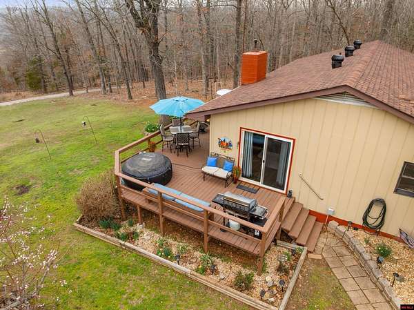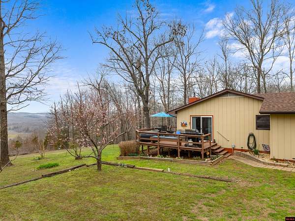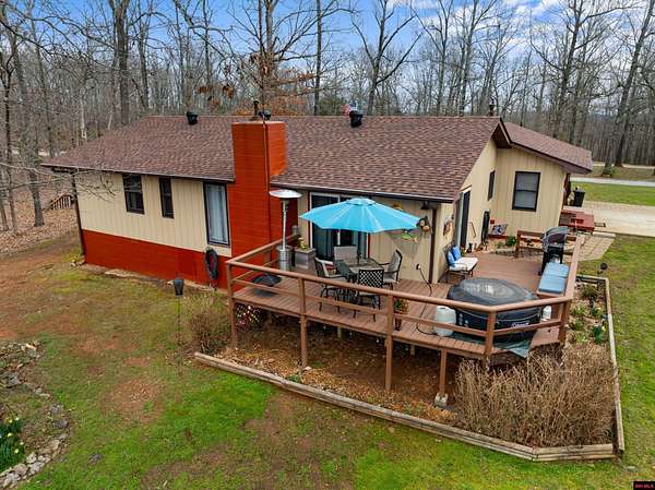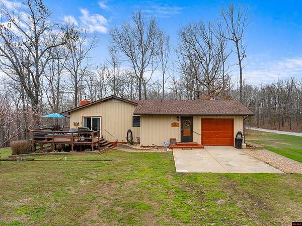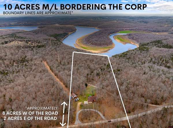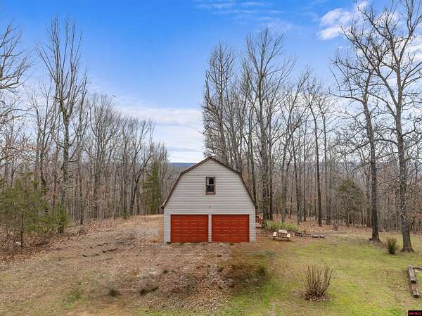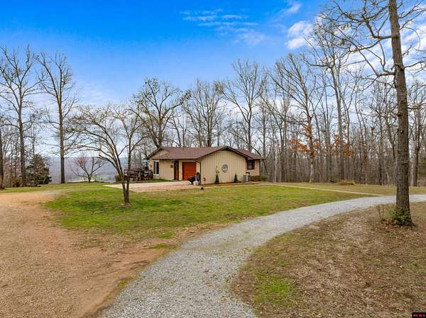Nearly 10 acres m/l bordering the Corps, sunset views over Norfork Lake, and total privacy near Turkey Knob—this one checks boxes you didn’t think you’d find together. If you’ve been craving quiet mornings, star-filled nights, and room to breathe—this is it. From the porch, you’ll enjoy year-round sunset views, and after dark, the sky truly puts on a show thanks to minimal light pollution. Inside, the home feels warm and inviting, featuring a pellet stove in the living room along with large windows that bring in abundant natural light. The kitchen offers upgraded countertops, ample storage, and a large island with double ovens—perfect for gathering and everyday living. A detached garage with storage loft adds versatility outside. Upgrades include a new roof, fresh interior and exterior paint, waterproof luxury vinyl flooring, and a 50 amp hookup. Located about 22 minutes from town, you’ll enjoy peaceful privacy without sacrificing convenience.