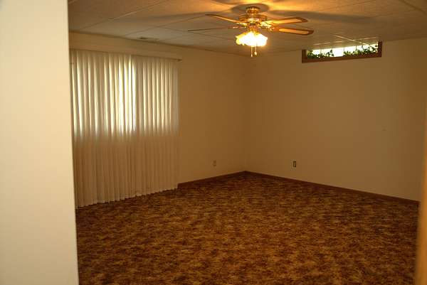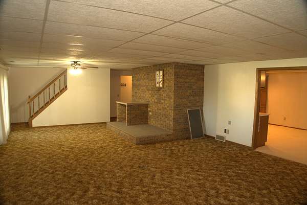 The walkout basement is designed for entertaining with a large open layout, a kitchenette, a built-in card table, a room with a hot tub, and a freestanding stove area. Two additional bedrooms, a full bath, and extra storage round out the lower level. The mature trees around the property (maples, cottonwoods) provide ample shade for the oversized concrete patio on the west side of the home, perfect for entertaining or relaxing.