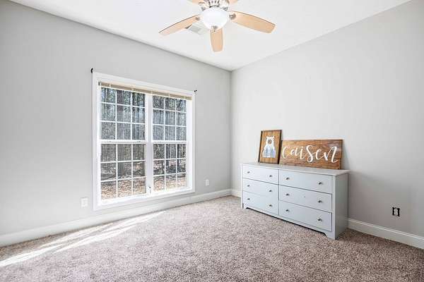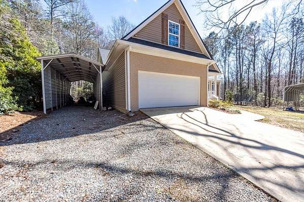 Welcome to your private retreat! This stunning 4BR/2BA home is nestled on 3 beautiful wooded acres in a highly desirable area, offering the perfect blend of privacy, space, and modern updates. Step inside to a spacious split-bedroom floor plan with all bedrooms conveniently located on the main level. The oversized Owner's Suite features a relaxing sitting area, while the open-concept kitchen with breakfast bar flows seamlessly into the Family Room with impressive 16-foot ceilings. A bright, oversized bonus room upstairs provides the perfect space for a home office, media room, or play area. Big-ticket upgrades are already done for you - including a NEW roof, NEW garage door, fresh exterior updates, and a tankless water heater. Both HVAC systems have been recently serviced for added peace of mind. Plus, a switch-on generator located in the laundry room can provide up to 6 weeks of backup power, a rare and valuable feature. Enjoy the long private driveway, peaceful natural setting, and plenty of room for all your toys with two tall carports perfect for RV and boat parking. Space, privacy, major updates, and incredible functionality - this property truly has it all!