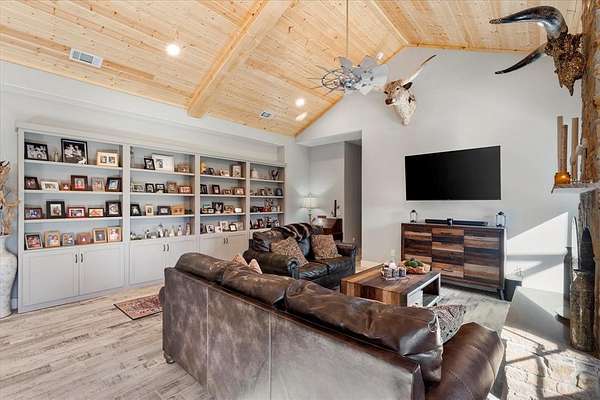 $800K Below Appraised Value! Spectacular acreage and an over-the-top barndominium on 18.7 acres near Cedar Creek Lake! This spacious 3-bedroom home with ensuite baths also includes 2 versatile flex rooms that can serve as bedrooms or media rooms. An office with a view and closet, plus a fully outfitted craft room, provide endless options for work and play. The great room is the ultimate open living space, filled with one-of-a-kind features, while the gourmet kitchen is impressive enough to make Martha Stewart cry! Step outside to a private covered outdoor living area with views of the heavily treed surroundings. The attached GIANT climate-controlled garage offers 3 oversized doors, a half bath, and additional storage, with a total under roof of over 8,700 sq. ft. Don't forget the barn, also climate-controlled with two separate workstations, each with its own mini-split air condition system. Rounding out the property are two stock ponds, a chicken coop, greenhouse, and full predator high fencing that encloses the acreage, home to exotic wildlife.