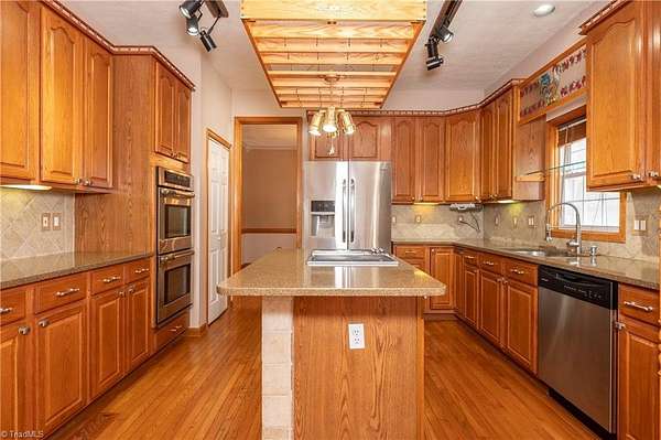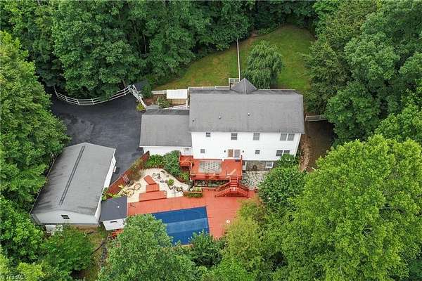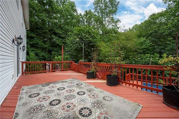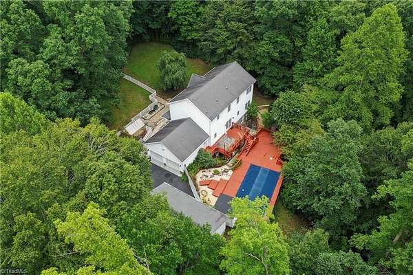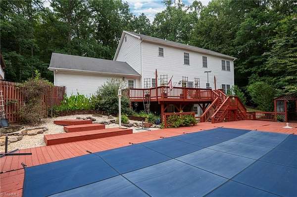 This Beautiful 4-bed, 4-bath Home is nestled on a peaceful 4.15-acre wooded lot in sought-after Stokesdale, NC, including adjoining lot 8293. A large deck off the kitchen overlooks the above ground pool with custom-built surrounding deck, perfect for entertaining. The finished basement features a game room with a pool table, wet bar, and soft-heat sauna. A separate workshop includes two floor-bolted gun vaults, and the home offers three garages that can be used for parking, a workshop, storage, and more. As well as a huge Attic with flooring for even more storage space.