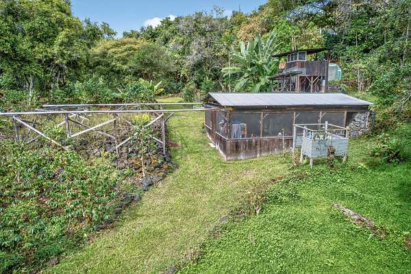 This is a leasehold property...And a highly successful working coffee and Mac Nut farm! The current owners have transformed this from a hobby farm to a successful income producing property. Live your dream! A must see, will not last! Discover your own slice of Hawaiian paradise with this extraordinary property-a flourishing tropical farm where history, sustainability, and natural beauty unite in perfect harmony. Nestled within a thoughtfully designed estate, you'll find multiple structures, including a historic farm-style main house with 3BR's & 2 baths, a charming mill house with sleeping area and outhouse, and a detached redwood home with 3BR's and1bath plus an outside shower. Rock walls are on 3 sides of property. Fully turnkey, this property comes with farm equipment, furnishings, and an active operation producing premium shade-grown Kona coffee, macadamia nuts, and tropical fruits. The main house blends rustic charm with modern convenience. Its spacious kitchen, open-concept living and dining areas, 3 bedrooms, and 2 baths create a warm, inviting retreat, living room cabinets replaced with custom mango and Australian pine cabinets. Below the main home is a full woodworking workshop, propagation/gardening room and extensive storage. A private guest suite, boasting its own entrance, 3 bedrooms and a full bath, and a kitchen with exquisite Koa cabinetry, elevates the experience. The suite's bedroom/library, crafted from reclaimed redwood, opens to a lanai with breathtaking ocean views and an open-air shower-perfect for savoring Hawaii's golden sunsets. At the heart of the estate stands the historic mill, a working hub where coffee and macadamia nuts are meticulously processed. Complete with a Hoshidana (retractable drying roof), this versatile space also provides quarters for farmworkers, blending practicality with timeless charm. Harvests include coffee, macadamia nuts, avocados, bananas, and more-offering a bounty of nature's finest.