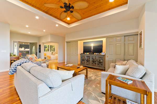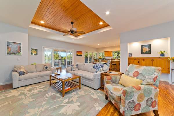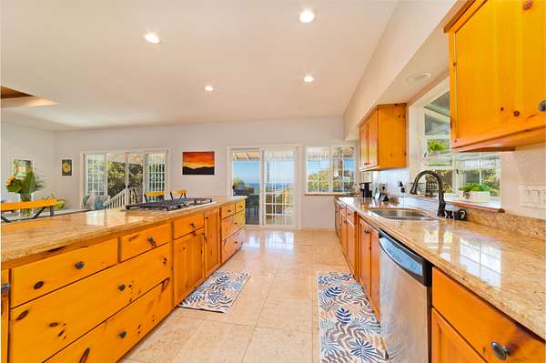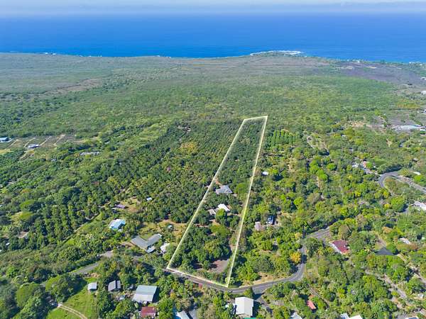 This is a leasehold property. 10.6 acre with a new KSBE lease to 10/31/2057. Searching for one home or possibly two on peaceful acreage, just minutes to the best beaches for ocean access? Then Look No Further! Check out this charming, 3 bedroom, 2 bathroom 1720 interior sqft home with 2 car garage built in 2005. Meticulously maintained home exudes simple luxury with unique details throughout including recessed tongue n groove ceilings, a versatile 3rd bedroom corner room & a discreet television closet. The thoughtfully designed open floor plan, positions the kitchen at the north side of the home with a clear line of sight to the front door. Entertaining will be a delight with the spacious island, Granite counters, pine cabinets, double wall ovens and gas cooktop. The kitchen opens to the 1048 sqft covered lanai, nearly doubling the living space and a wonderful place to experience ocean views and the typical year-round perfect weather. The primary en suite opens to its private section of the lanai. The bathroom features a comfortably sized tile and stone walk-in shower. Additionally, the outside shower makes clean up more convenient from working or playing outside. Separate 4-car, 1056 sq ft garage, built in 2004, away from the main house and currently used as a shop and quilting studio would be ideal converted into an additional farm dwelling. * Both structures were recently painted * Being offered turnkey furnished. * 9 acres in mature/producing mac nuts * Home is privately situated in the upper middle of the property with no neighbors in sight. The property is between Middle Ke'ei Rd and 555 acres of pasture. Located just minutes to The City Of Refuge and some of the best ocean access for water sports in the state. Other nearby beaches include Ho'okena, Manini, Ke'ei & Kealakekua Bay. ** KSBE Ag LH properties require 100% cash purchase * Escrows take a minimum of 6 months to Close