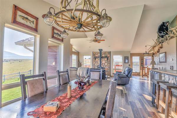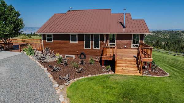 Welcome to 83 Big Country Drive, in Townsend, where Montana dreams do come true. What a gorgeous private 27.34+- acre horse property engulfed in 360 views & unbelievable sunsets. This has been said to be some of the best Broadwater County offers. This custom 2,838+- sq foot home offers 4 bedrooms, 2 1/2 baths, plenty of storage, & a beautiful kitchen overlooking the open concept with sweeping panoramic views out walls of picture windows. Efficiently built this home has a gas furnace, an AC unit & a gorgeous wood stove. Vigilante Co-Op provides the power. Within the last year renovations & upgrades have been made inside & out. A few of these custom touches are crafted rock work, new floors, texture & paint, trim, a wood stove, insulation, siding, metal roofing, soffit, facia, gutters, landscaping & high-quality redwood decking. Full views of Canyon Ferry Reservoir & the mountain ranges are incredible. Abundant wildlife habitat. Licensed Montana Real Estate Agent owned. This home is 2,838+- sq feet with the main level boasting a master suite complete with a full bathroom. The 1/2 bath & laundry are located just off of the front entry which is so convenient. The kitchen has great storage complete with a wall mounted oven & the JennAir stovetop, grill & downdraft ventilation. Views from the kitchen are breathtaking. The kitchen overlooks the dining area & living room. We are excited for you to experience the views from the dining area. Many meals have been enjoyed while watching sunsets as the wildlife roam. It is so peaceful watching the deer & horses graze while the turkeys race around the yard. The living room is also wrapped with picture windows absorbing natural light & panoramic views from the Townsend valley, Canyon Ferry Reservoir, the Elkhorn Mountain Range, Mount Baldy & all the way over to Edith. Waking up to sunrises & warm fires sooths the heart & just starts the day out right. The east side walk out redwood deck is accessed through the French doors with the BBQ gas line ready for summer dinners. The wood stove sits perfectly within the custom rock work offering warmth & efficiency. The walk out basement is beautiful with natural light shining through the large windows. The French doors open up to the patio & an above ground fire pit.. The three bedrooms are larger each with nice closets & sizeable windows. The 3rd room was used as an office while the closet was utilized as the home's storage pantry. Efficiently built & heated, the gas furnace, the AC unit & water heater have all been recently serviced while the septic was pumped & inspected. The power is provided by Vigilante Co-Op. This home is Montana Real Estate agent owned. The owners were planning on keeping this home forever so upgrades & renovations were completed in late 2024 & early 2025. The inside of the home has had all new texture, paint, trim, flooring, custom rock work, a wood stove & insulation while the exterior has a new seamless metal roof, smart siding, wrapping, soffit, facia, gutters & the most beautiful redwood decking. The redwood has been sealed with linseed oil twice. This brings out the beautiful colors while protecting it from the weather elements. This is also for easy maintenance. The 27.34+- acres has NO COVENANTS & is the perfect horse property. The round pen & holding corral are great. When one has horses, a round pen is just about a must. The holding pen has been used for raising beef. the pastures have been fertilized & seeded with practice of weed control. The garden was completed in the summer of 2024 with a custom-built greenhouse, above ground garden boxes & a wonderful low maintenance watering system. Which could easily be hooked up to the yard's underground watering system. The mature raspberries have provided gallons of berries while the chokecherry, plumb, cherry, pear & apple trees are growing and starting to produce. Now look at those redwood decks! When you tour the property imagine soaking in a hot tub while soaking in t