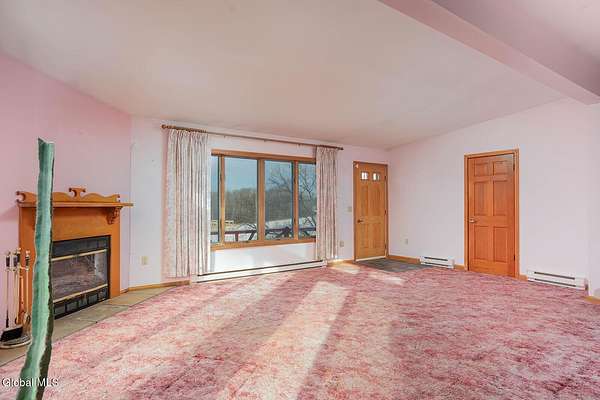 Charming 2BR/2BA Ranch on 5+ Acres - Schuylerville Schools, Minutes to Saratoga! Built in 1990, this well-maintained 2-bedroom, 2-bath ranch-style home offers 1,250 sq ft of single-level living on 5.09 private acres in the sought-after Schuylerville School District. The home features multiple heat sources-electric, a newer forced hot air furnace, and a propane fireplace-plus central air and a whole-house generator for year-round comfort and peace of mind. This rural retreat offers the perfect balance of privacy and convenience-just minutes to Saratoga Springs and a short commute to the Capital District or Glens Falls region. Whether you're looking for a year-round residence or a peaceful weekend escape, this property delivers. Enjoy a spacious living area with large windows, an open kitchen layout, and a full wraparound deck overlooking your wooded surroundings. A detached 2-car garage provides ample parking and storage. Recent upgrades include a new furnace, water softener, updated HVAC, hot water heater, oil tank and generator system.