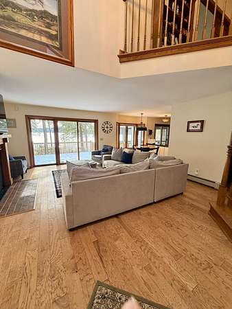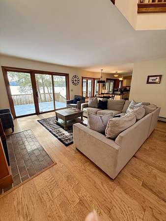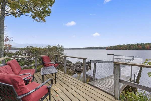Lakeside Retreat on Thompson Lake - East Shore Serenity! Set along the highly sought-after east shore of Thompson Lake, this exceptional waterfront property offers the perfect blend of privacy, comfort, and year-round recreation. Spanning 12.5 acres with an impressive 335 feet of private waterfront, this home is a rare opportunity to enjoy Maine lake living at its finest. A small sandy beach area invites effortless swimming and relaxation, while the expansive docking system makes boating and lake adventures effortless. Down by the water, a beautifully designed lakeside deck and fire pit create the perfect setting for evening gatherings and unforgettable sunsets. Inside, the home offers over 3,700 square feet of living space, featuring 5+ bedrooms and 4.5 baths, comfortably accommodating large groups. Designed to highlight its stunning setting, the home includes a screened-in porch overlooking the lake, perfect for quiet mornings or relaxing afternoons. A hot tub with panoramic water views adds a luxurious touch, offering a peaceful retreat in every season. Currently set up for short-term rentals, this property presents not only a beautiful getaway but also a compelling investment opportunity. It boasts a strong and proven history of rental income, making it ideal for those looking to offset ownership expense or generate consistent revenue while enjoying the home themselves. Conveniently located with easy access to major routes, you're within reach of Portland, the Jetport, Oxford Casino, Ski Areas, Local grocery stores, restaurants, and golf courses. Whether you're boating in the summer, taking in fall foliage, skiing in the winter, or enjoying peaceful spring mornings by the water, this Thompson Lake retreat offers true four-season enjoyment with the added benefit of income potential. For More Information contact Heather Hanson or email