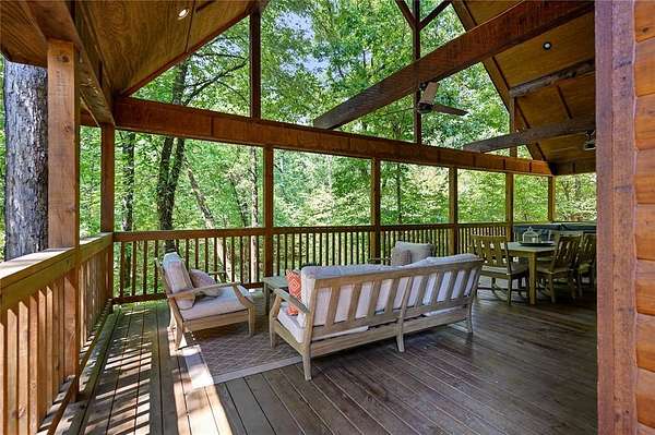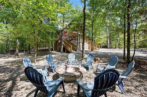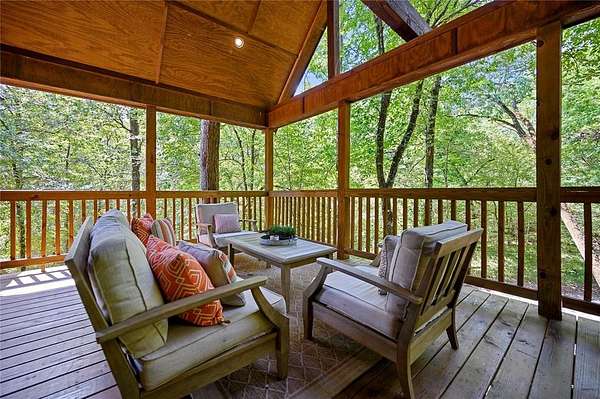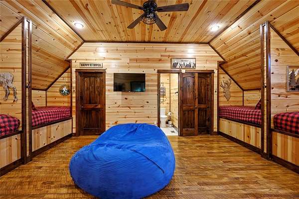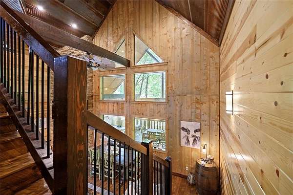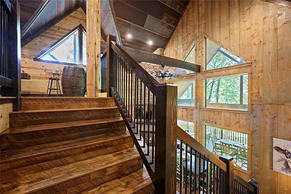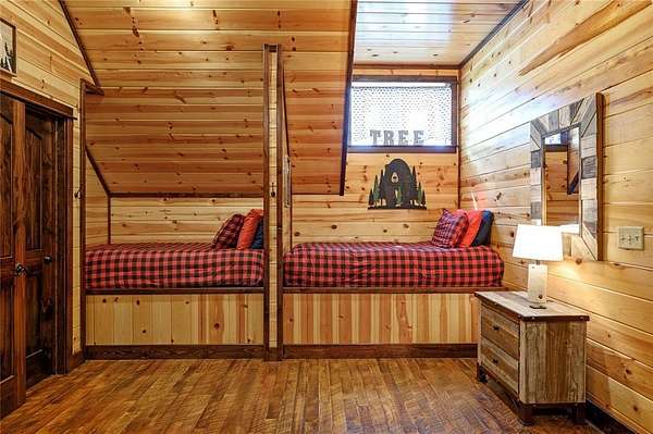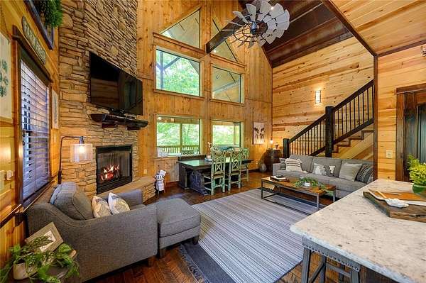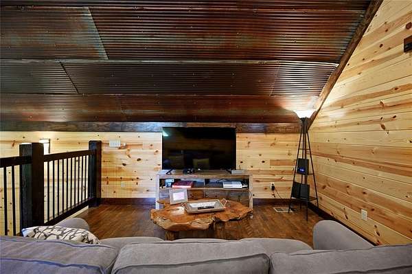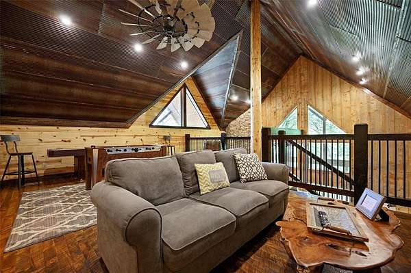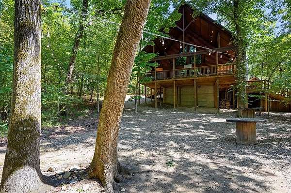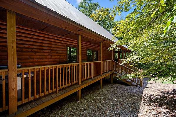 Buffalo Pines Resort is a secluded 3BR/3BA luxury STR cabin nestled on approximately 2 wooded acres just minutes from Hochatown. Sleeping 10 comfortably, this rustic meets modern retreat offers the perfect blend of comfort, charm, and income-producing potential. With over 1,400 square feet of covered deck space and a hot tub fully surrounded by trees, guests experience privacy, relaxation, and that true Broken Bow getaway feel buyers are looking for. Inside, the cabin features 3 beautifully appointed bedrooms, each with its own private bathroom. Two downstairs suites offer king beds, while the upstairs bunk room includes four built in oversized twin beds, perfect for larger groups and repeat rental appeal. All bathrooms feature on-demand hot water. The upstairs loft and game room includes a full size sleeper sofa, foosball, shuffleboard, 4K TV with Xbox One. A full size washer and dryer add convenience for extended stays. The fully equipped kitchen features stainless steel appliances, refrigerator with in door ice maker, walk in pantry, high chair, and all dishes and utensils needed. The dedicated coffee bar includes a 12 cup programmable coffee maker & coffee grinder. The living room showcases high ceilings, large windows, a cozy fireplace, and 4K TV, creating an inviting space for gathering. Outside, a 3/4 wraparound covered deck offers a 6 person hot tub, hammocks, and ample lounge seating. Guests enjoy a fire pit with seating, cornhole, horseshoes, large Jenga, & a propane grill. A seasonal creek, wooded trails, circular pull through driveway for boats or ATVs, climbing net, rope swing, and regular deer sightings add to the strong short term rental appeal. This property delivers the full luxury cabin experience investors and vacation buyers seek.
