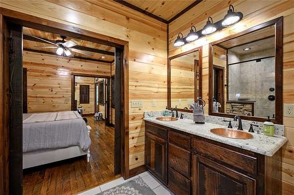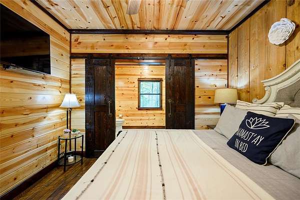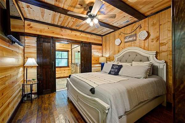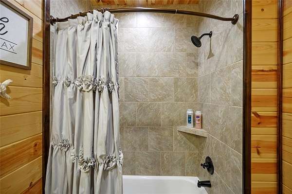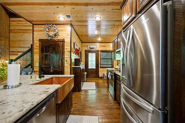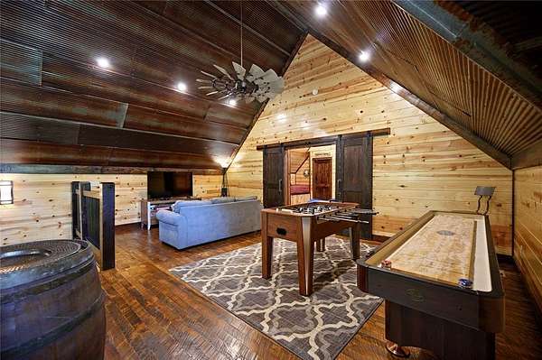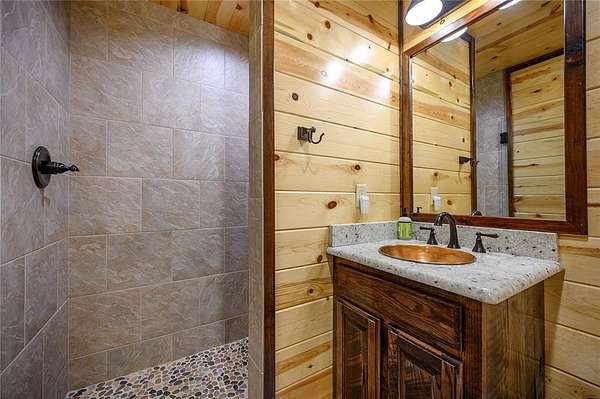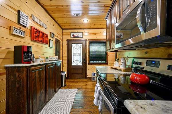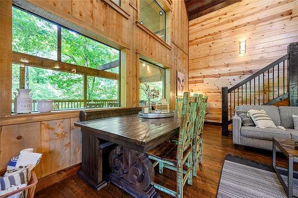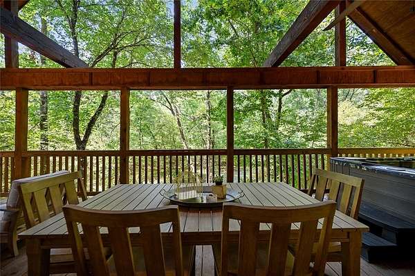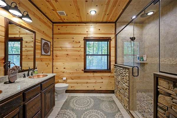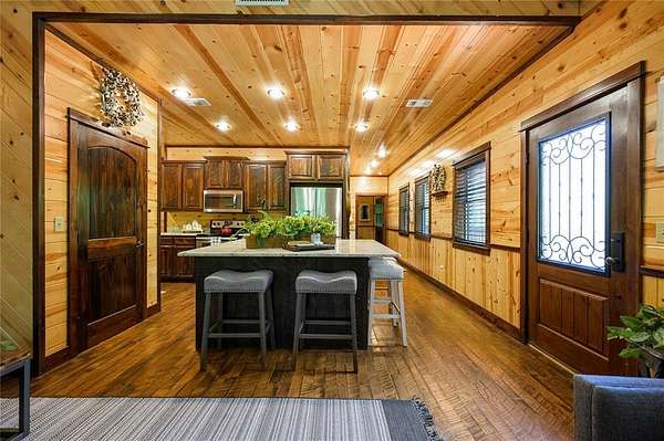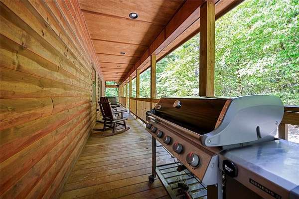 Buffalo Pines Resort is a secluded 3BR/3BA luxury STR cabin nestled on approximately 2 wooded acres just minutes from Hochatown. Sleeping 10 comfortably, this rustic meets modern retreat offers the perfect blend of comfort, charm, and income-producing potential. With over 1,400 square feet of covered deck space and a hot tub fully surrounded by trees, guests experience privacy, relaxation, and that true Broken Bow getaway feel buyers are looking for. Inside, the cabin features 3 beautifully appointed bedrooms, each with its own private bathroom. Two downstairs suites offer king beds, while the upstairs bunk room includes four built in oversized twin beds, perfect for larger groups and repeat rental appeal. All bathrooms feature on-demand hot water. The upstairs loft and game room includes a full size sleeper sofa, foosball, shuffleboard, 4K TV with Xbox One. A full size washer and dryer add convenience for extended stays. The fully equipped kitchen features stainless steel appliances, refrigerator with in door ice maker, walk in pantry, high chair, and all dishes and utensils needed. The dedicated coffee bar includes a 12 cup programmable coffee maker & coffee grinder. The living room showcases high ceilings, large windows, a cozy fireplace, and 4K TV, creating an inviting space for gathering. Outside, a 3/4 wraparound covered deck offers a 6 person hot tub, hammocks, and ample lounge seating. Guests enjoy a fire pit with seating, cornhole, horseshoes, large Jenga, & a propane grill. A seasonal creek, wooded trails, circular pull through driveway for boats or ATVs, climbing net, rope swing, and regular deer sightings add to the strong short term rental appeal. This property delivers the full luxury cabin experience investors and vacation buyers seek.