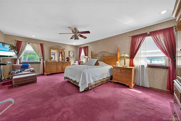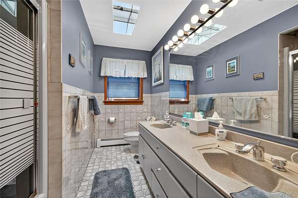 You'll find three generously sized bedrooms, including a primary suite with ample closet space and its own private bath. A full hallway bath with double sinks adds convenience for family or guests. The lower level boasts, finished rooms for extra space, boiler room, washer and dryer, large livingroom plus rec room with seperate entrance.