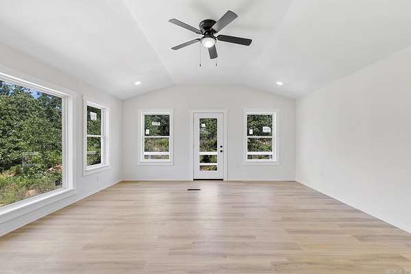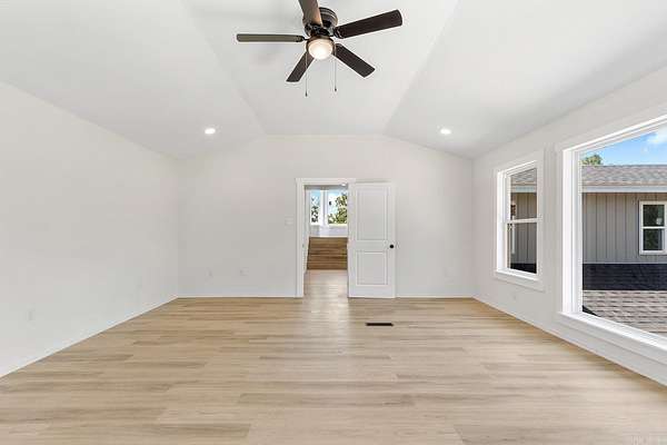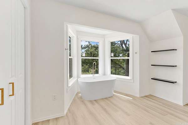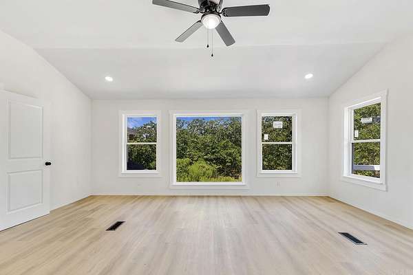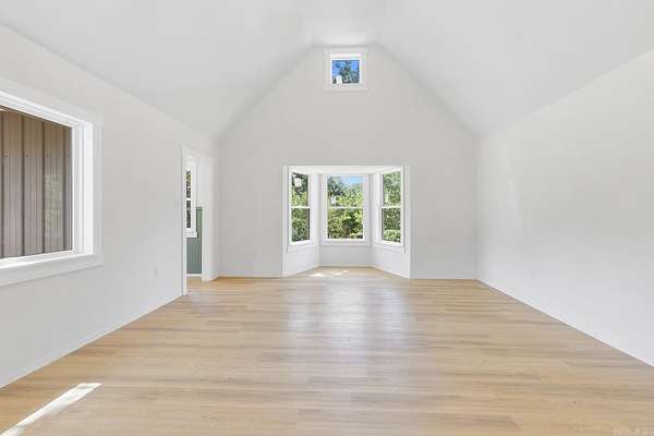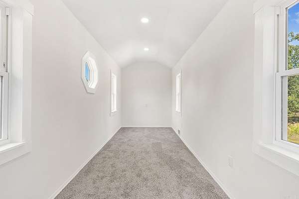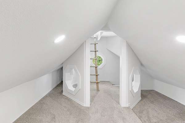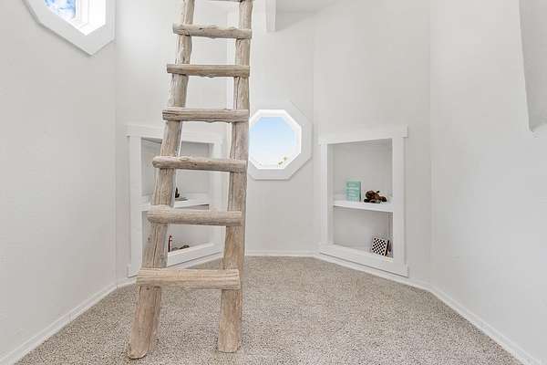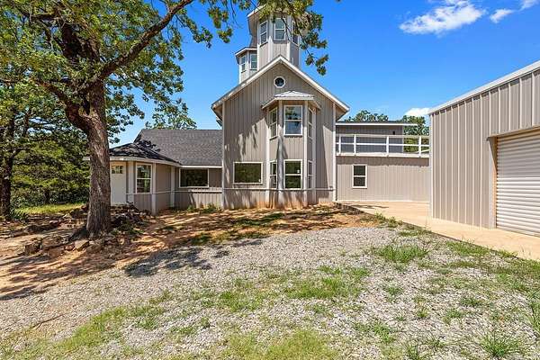 Truly one-of-a-kind, this stunning home features two castle-like spires and is perfect for kids—young and old. The chef’s kitchen boasts Calacatta quartz countertops and high-end stainless appliances. Enjoy the flexibility of two primary suites—one on each level. Upstairs, the expansive primary bedroom offers abundant natural light and private access to a huge wraparound balcony. The luxurious en-suite bath includes a walk-in shower with bench and rainfall head, plus a soaking tub framed by bay windows. An extra room offers space for a home office or additional closet. On the third floor, a large playroom or child’s bedroom leads to a magical spire lookout with wraparound windows—perfect for sparking creativity. Nearly everything in this home is brand new, built from the ground up within the last year. Equipped with multi-zone high-efficiency heat pumps. A brand-new 1,080 sq ft shop is also included, with additional acreage available for purchase.