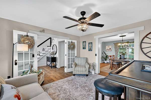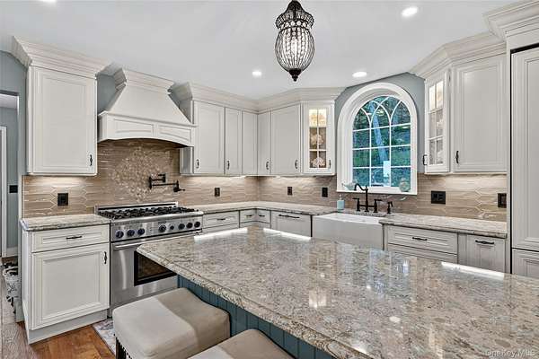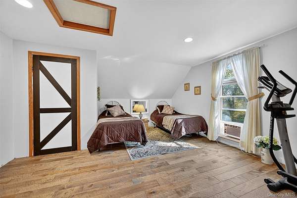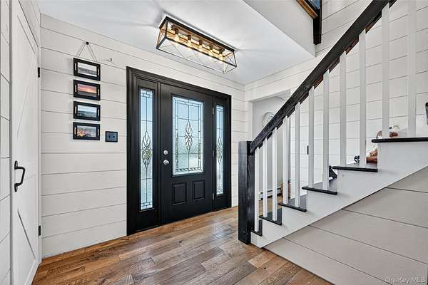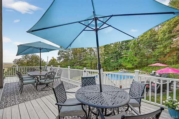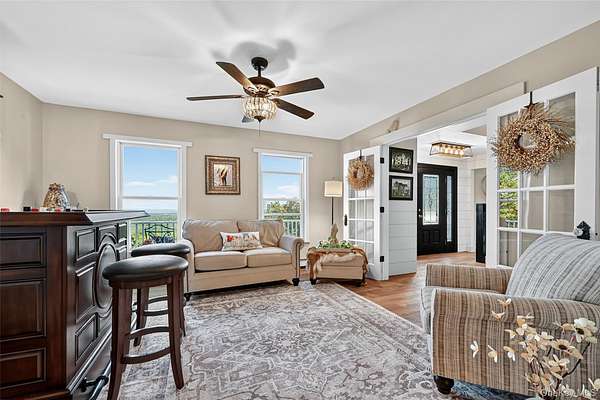 This spectacular home which can be used as a weekend retreat or an ideal home nestled on over 25 private acres with a serene pond, offering unmatched peace, beauty, and breathtaking eastern views of the sunrise from its expansive wrap-around porch. The property invites you to take walks or hikes through the woods and enjoy the sights and sounds of nature in complete privacy. Inside, custom hand-hewn wide plank hardwood flooring flows across all three levels, and the home has been beautifully renovated over the past five years. Each room has been uniquely designed by the owners, giving the home a distinctive sense of warmth and individuality. The inviting living room is filled with natural light, while the cozy den with a fireplace provides the perfect space for quiet evenings or a versatile home office. A formal dining room creates the ideal setting for special gatherings. At the heart of the home is a remarkable chef's kitchen, designed with both function and elegance in mind. Highlights include a six-burner gas range with pot filler, French ceramic sink, quartz countertops, exquisite cabinetry, a counter-depth refrigerator seamlessly encapsulated with matching panels, and a statement chandelier overhead. Just beyond, you'll find a spacious pantry, laundry room, and half bath. From here, step outside to the expansive deck and the saltwater in-ground pool which can be heated on cool days. There's plenty of room to lounge, entertain, and splash around. Upstairs, the primary bedroom retreat features a generous walk-in closet and a luxurious bathroom with jacuzzi tub. Another bedroom is connected to a Jack-and-Jill bath, while a third offers serene, light-filled views. The third floor adds even more living space, with two expansive rooms that can be transformed into a home office, studio, fitness area, or guest suite-each framed by inspiring views of the property. In addition to its natural beauty and thoughtful design, this home is ideally located. Local schools are just minutes away, the Otisville train station provides convenient commuter access, and major shopping centers and Garnet Health Medical Center are approximately 15 minutes from your doorstep. This home perfectly balances natural beauty, thoughtful craftsmanship, and modern luxury, creating a private sanctuary like no other.
