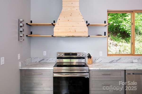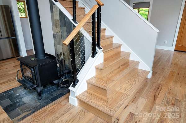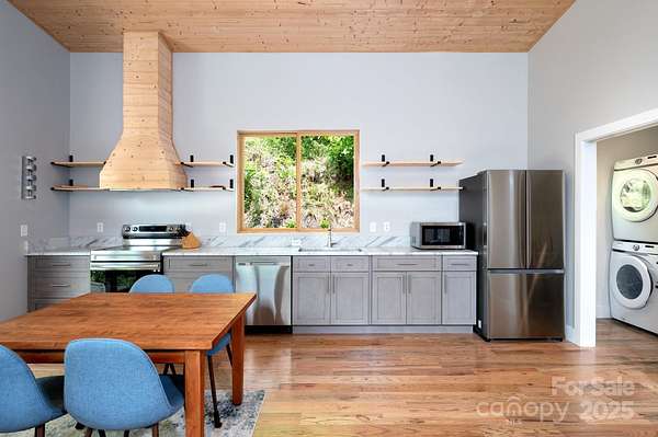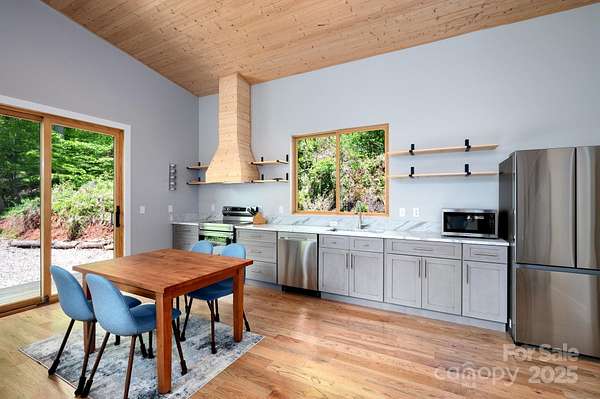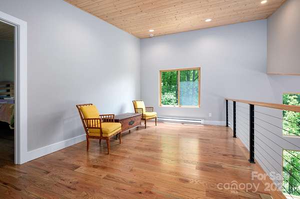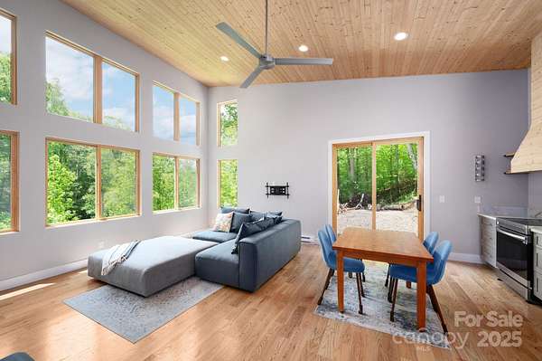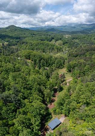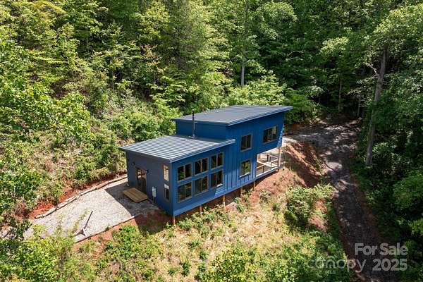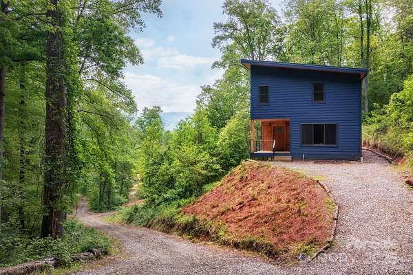 Back on market at no fault of property - buyers contingent offer fell through. Silver lining - Spectacular winter long range mountain views are now visible from the main house!! Nestled in the Blue Ridge mountains, this custom built home offers true retreat. Meticulously designed to bring the outside in, large picture windows bathe this home in natural light. Solid oak floors and wood ceilings anchor the quality of finishes throughout. Stay cozy year-round with a centralized wood-burning stove. Unwind on the covered front porch or back patio with firepit. Enjoy foraging for raspberries/blackberries. This unique 7.66-ac lot borders Sandy Mush Game Lands and includes a second build site with long range mountain views, driveway, electric, and individual well/septic in place. Hike out your door to over 200 acres of national forest. Form meets function with solar ready roof, double wall insulation, and sealed, climate controlled crawlspace. Appliances included and furnishings are negotiable making this cabin move-in ready. 5 min to Grateful Roots Market, Longleaf or Addison Farms Vineyards. $20k credit at closing with acceptable offer toward minisplit installation.