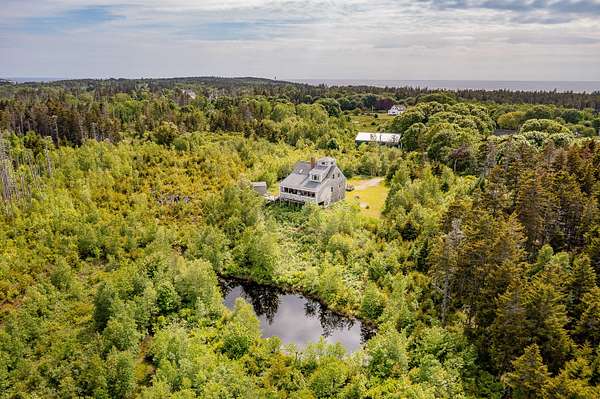 Escape to the extraordinary on Matinicus Island. Set on over 18 private acres at the north end of the island, this shingle-style year-round home offers a rare combination of comfort, seclusion, and adventure. Enjoy over 200ft of frontage on the white sands of Markey Beach, a meandering trail to the oceanfront, multiple ponds, and even the potential for a private airstrip, perfect for ultimate island access. Built in 2010, the home blends modern amenities with timeless coastal character. Designed for year-round living, it features 10-inch thick walls and blown-in insulation for excellent comfort and energy efficiency. The main level offers an open-concept kitchen and dining area with cathedral ceilings, a cozy living room with woodstove, a full bath, and a flexible office with large closet. Step onto the covered porch to take in panoramic ocean views, passing boats in Matinicus Harbor, and birds nesting on No Mans Land Island. The top floor is home to a private oceanview primary suite with full bath, a peaceful retreat with breathtaking views. A separate guest bunk room is located above the garage and can be accessed without entering the main house, offering privacy and flexibility for visitors. The walk-out lower level includes a one-car garage, a dedicated mechanical and storage space, and a 1.5-story greenhouse complete with ventilation fan and floor drains. For larger equipment, the 40x60 metal storage barn features three oversized overhead doors, ideal for housing a tractor, ATVs, boats, or all your island gear. This unique property provides everything needed to experience the peace, beauty, and independence of Matinicus, all with the comforts of home.