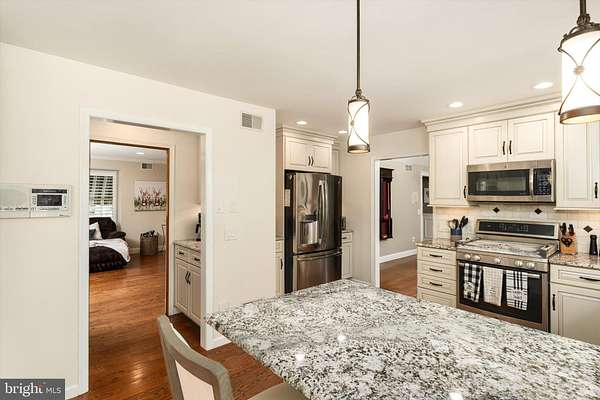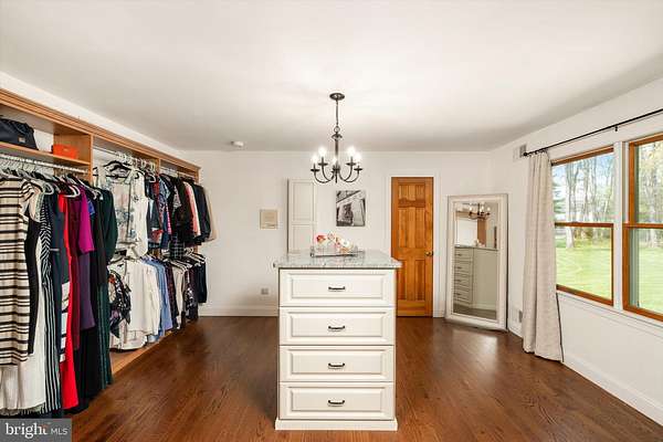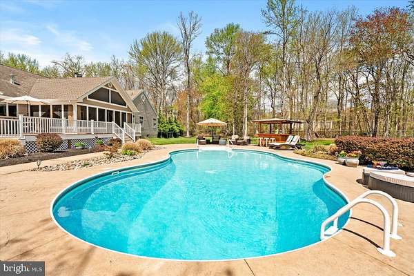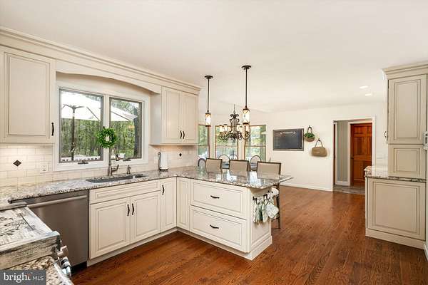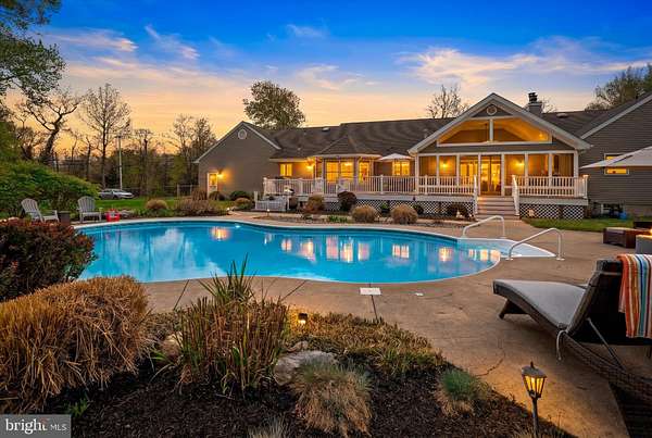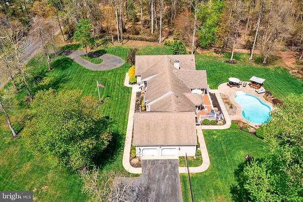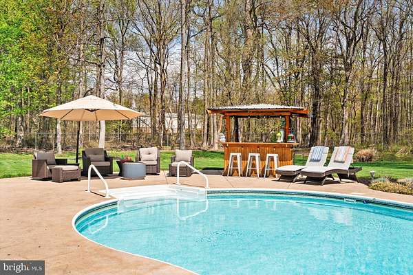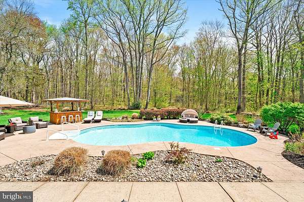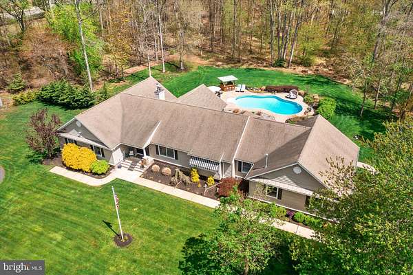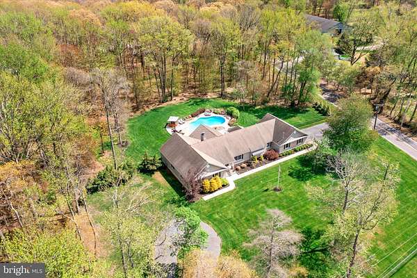 Immaculate, custom-built, freshly painted, 3200+sq ft ranch situated on 2.75 park like acres, offers everything you've been looking for. This 4 bedroom, 3.5 bath home features convenient one-floor living! Gourmet kitchen has custom white cabinetry, granite countertops, & stainless steel appliances and a butlers pantry. The eat-in dining area overlooks the picturesque backyard. Hardwood floors through out most of house. The master bedroom contains two master closets with custom shelving and changing area. The recently renovated vaulted great room features a stone gas fireplace and flows seamlessly into a three-season sunroom complete with a sitting area, fire pit and bar- the ideal area for entertaining. Walk outside to the composite deck which leads to a beautifully landscaped resort style backyard with heated in-ground salt water pool and Tiki bar. Additional features include a full basement which is an open canvas, heated garage and whole house vacuum. This home also features an additional circular driveway for additional parking! This is the house you have been waiting for! Make an appointment today!