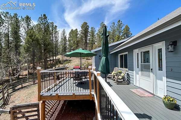 Secluded Mountain Retreat Turnkey, 5-Star Airbnb or **Private Home Discover this 2,400 sq. ft. mountain property tucked away on nearly 9 private, treed acres with stunning mountain views and abundant wildlife. This 3-bedroom, 2-bath home offers a functional layout with a private primary suite on its own floor, complete with en suite bath and a balcony. The spacious kitchen features 2 ovens, a breakfast bar and lots of counter space. A huge deck extends your living space for entertaining. Overlooking the surrounding forest, enjoy your morning coffee with breathtaking sunrises. Finish your day with cozy evenings by the wood-burning stoves in both the living room and basement. Currently operating as a 5-star rated Airbnb, this home can continue as a proven income-producing, short-term rental or serve as your private mountain escape. With the right offer, the property can be sold fully furnished and turnkey for an effortless transition. Outdoor enthusiasts will love the proximity to 11 Mile Canyon fishing, Florissant Fossil Beds, nearby hiking trails, and the Colorado Wolf and Wildlife Center-For a night out, Cripple Creek's casinos are just 30 minutes away. This is mountain living at its finest - whether as an investment property or your own secluded retreat.