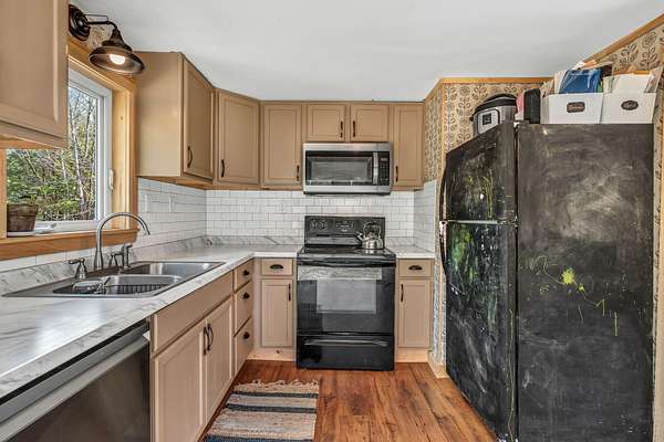 Tucked away down a long driveway off Ridge School Road, this 3-bedroom, 1-bath ranch offers a rare sense of privacy on 14.53 surveyed acres. The land has already been divided into 3 separate parcels with an owned right-of-way, offering flexibility for dividing the land, creating future homesites, or establishing a multi-dwelling compound or homestead. The seller has made thoughtful updates throughout, including a remodeled kitchen and bathroom in the last six months, new laminate flooring throughout, added insulation, and a soapstone wood stove for warmth and character. The barn and shed were built from lumber milled right from the land, and an acre has been cleared for gardens. Seller is willing to offer a credit toward a heating system--adding even more flexibility for the next owner. All this, just a short walk to Liberty residents' access at Lake St. George, and conveniently located--about 30 minutes to Belfast and Augusta, and 45 minutes to Rockland.