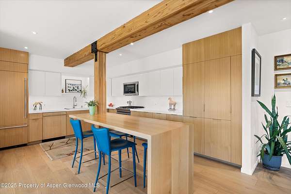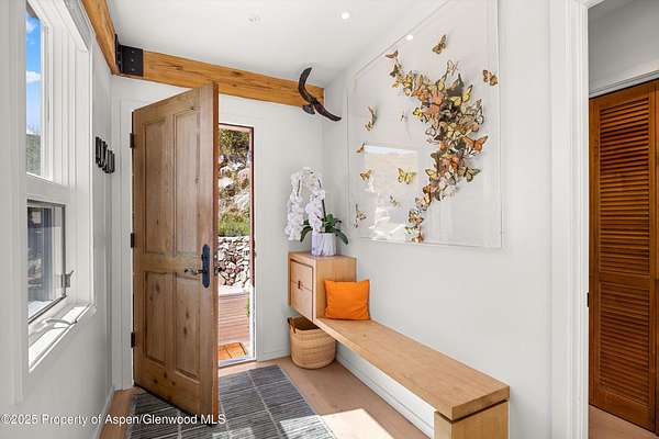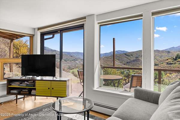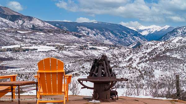 Nestled on over two private acres with unobstructed breathtaking views of the Continental Divide, Aspen Mountain, Aspen Highlands, and with glimpses of West Buttermilk and Snowmass, this peaceful, contemporary, mountain retreat offers modern updates, energy efficiency, and income potential, just 15 minutes from Aspen, Snowmass, and Basalt. The heart of the home-its kitchen, living, and dining areas-was just completely renovated. It features custom 1/4 sawn white oak cabinetry, quartz countertops and backsplash, high-end JennAir appliances, and wide-plank flooring. A craftsman-built 1/4 sawn solid oak with continuous grain island, adds functionality, while a Hearthstone woodstove in the living room enhances the cozy mountain feel. LED dimmable lighting, artwork lighting, and custom fixtures complete the space. The generous primary suite features large picture windows to soak in the vistas, a walk-in closet, wide-plank flooring and just updated bath with stone countertops, double vanities, walk-in steam shower, deep soaking tub and abundant natural light. Additional bedrooms share a hall bath, while a conveniently located laundry room sits just outside the guest rooms. The lower-level artist's studio has its own entrance, kitchen, deck, and dedicated parking area. It can remain separate or be reconnected to the main home. Built for low-maintenance living, the home includes in-floor radiant heating on the main level and hot water baseboard heating upstairs and in the artist's studio. A 22KW whole-house generator provides security, and photovoltaic solar panels power the home, with existing panels available for solar water heating if desired. The septic system, replaced in 2020, has the potential to be expanded. Outdoor spaces include a large Trex deck with a retractable awning, a stone patio with a firepit, and two flat yard areas. Terraced flower beds line the walkway, adding charm to the setting. The detached heated three-car garage offers ample storage, with one bay set apart for flexibility, plus an auto court with parking for six vehicles. Two storage sheds provide additional space for gear and equipment. Located in the Aspen School District, this home offers tranquility, modern comforts, mountain serenity, and easy access to hiking and biking trails, skiing and all that Aspen has to offer.