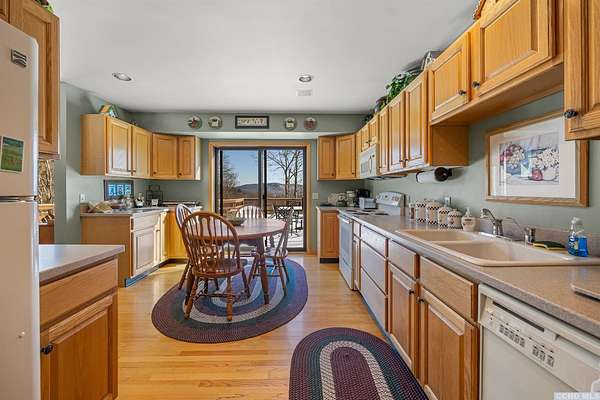 A Home of Distinction -- there are two distinct sections of this 4+ BR, 4.5 BA, 2 office spaces, 3,666 sf home that is sited on 18.5 private acres. Wood-burning fireplace, 2 gas wood stoves. Pond with gazebo. The main section has 3 BR's, living room, family room, eat-in kitchen, access to the deck with Catamount views and an attached 2-car garage. The addition has a welcoming entrance, 1 BR. Here's what is really cool about this home -- there is a finished lower level that connects the addition to the main home. There you will find a extra room with radiant heat and exterior access, 2 offices and a spacious playroom. An opportunity not to be missed.