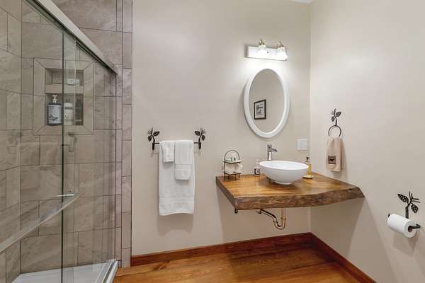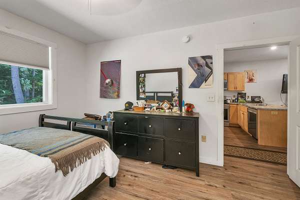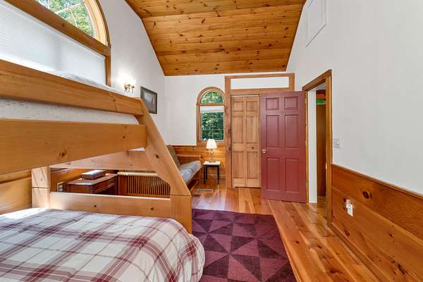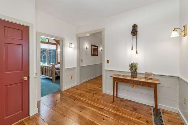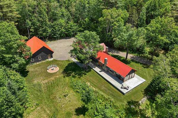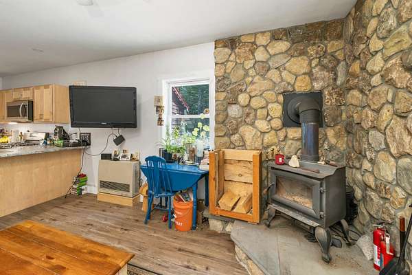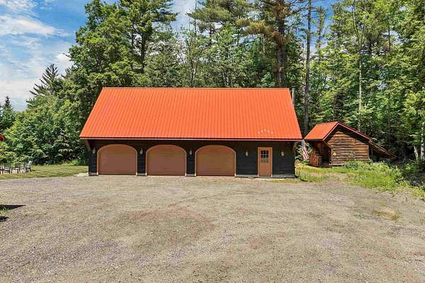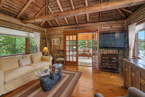 Luxury Log Home Mountain Retreat in Jackson. A Rare Offering on 6 Private Acres. Opportunities like this are truly uncommon. This custom luxury log home blends character, privacy, and versatility in one unforgettable mountain retreat. Set on 6 secluded acres with beautiful views, an open floor plan, and the ease of one-level living, it offers a rare combination of comfort and craftsmanship. Seller financing is available. Renovated in 2020, the home makes a stunning first impression with massive hand-hewn log beams, a soaring cathedral ceiling, and warm natural wood throughout. The great room features wide plank pine floors and a newly added gas fireplace set in a striking natural-stone hearth. The chef-inspired kitchen pairs rustic charm with modern convenience, highlighted by a fully restored antique Raymond wood-burning cookstove framed in stone. Relax in the 4-season sunroom surrounded by nature, or step onto the expansive 1,200-sqft wrap-around deck for outdoor living at its best. The spacious primary suite includes log walls, a sitting area, walk-in closet, and private bath. Two additional bedrooms--one ensuite--complete the main level. Bonus Space: A detached one-level apartment offers a bedroom, full kitchen, living room with wood stove, full bath with laundry, and its own garage bay. Two oversized garage bays add exceptional storage or workshop options--ideal for guests, rental income, multigenerational living, or a caretaker. The wooded setting includes a stone patio with firepit, a large woodshed, and ample parking. Minutes to skiing, hiking, North Conway, and Jackson Village, this home delivers the perfect blend of luxury, privacy, and mountain-town charm.