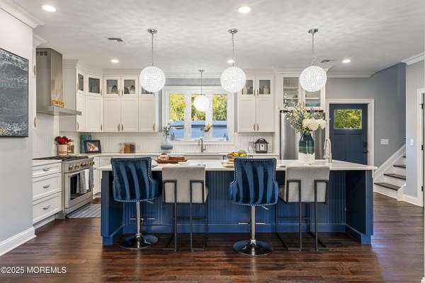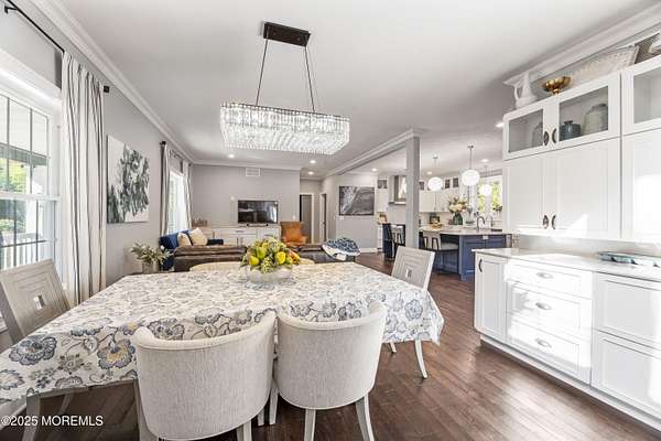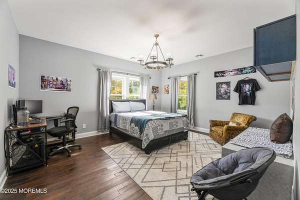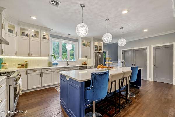 Stepping into this exquisitely built masterpiece through the breathtaking 2 story foyer with custom coffered ceilings & a stunning chandelier will have you feeling happy to be home. Completed in 2021, this 6 bedroom, 4.5 bath custom home is set on 5 acres (two lots) & has a 3 car garage, a partially finished basement & upgrades galore! Imagine cooking in your farmhouse inspired chef's kitchen, entertaining guests in your great room/theatre room or relaxing on your massive front porch while drinking your morning coffee. Some upgrades include oversized closets in every room, custom lighting & built-ins in many rooms. All this & still in close proximity to bus transportation to NYC, Bell Works, Garden State Parkway, the famous Jersey Shore, schools, parks & municipal amenities. Don't wait!