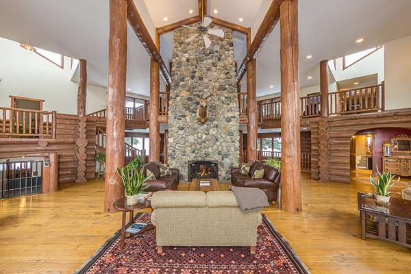 Shields River Lodge sits between the Bridger, Absaroka, and Crazy Mountains along the productive Shields River, in the heart of the Shields River Valley. The lodge sits in the center of 282+- acres of pristine Southwestern Montana land with one mile of the Shields River, a guide favorite for fishable trout water, making up the eastern boundary. Run as a fly fishing lodge in the past, the 14,000+- square foot compound comprises nine bedrooms and 10.5 bathrooms with breathtaking views. The stunning log structure could be used as a single-family residence or in various other ways. Enjoy a cup of coffee on the expansive deck while watching the sunrise and wildlife come alive, or a glass of wine as the sun slips below the mountains. The striking improvements are only bested by the hundreds of deeded acres to recreate on. This extremely private property ranges in elevation from 4,780+- feet near the river to 5,040+- feet to the west. The property has been well-managed, from its lush river bottom to diverse dry land, rolling meadows, and extensive trail system. Enter through a private gate and follow the drive to reach the main lodge and tennis courts in roughly the center of the property. For those who enjoy a morning ride astride their favorite horse, mountain bike, E-bike, snowmobile, cross-country skis, or snowshoes, or a fun hike with friends and family, there are miles of beautiful trails that will take you throughout the acreage. Located just outside Clyde Park, close to the historic town of Livingston, and not far from Bozeman's international airport, Shields River Lodge is offered turnkey and is move-in ready for the next owner to begin their Montana adventure.