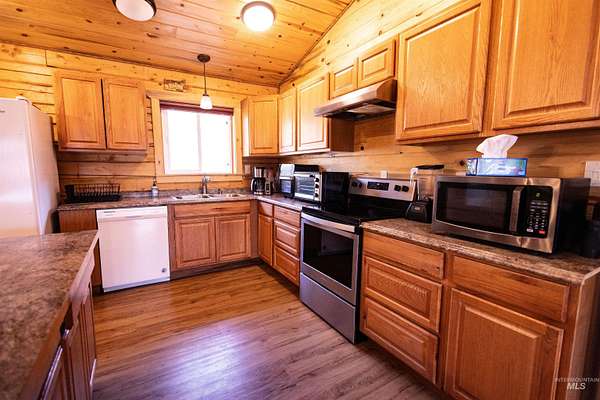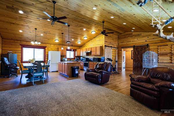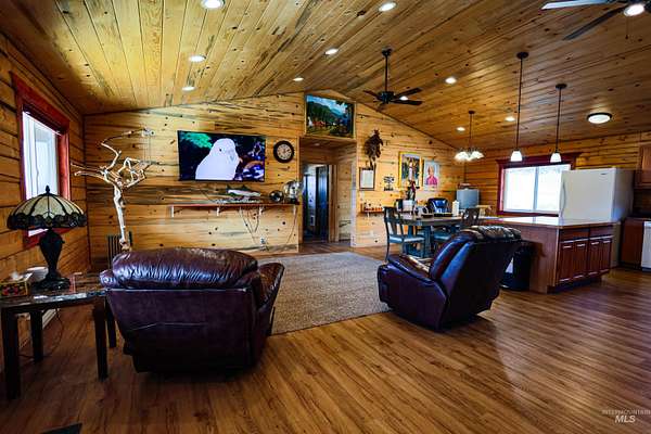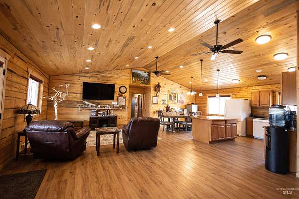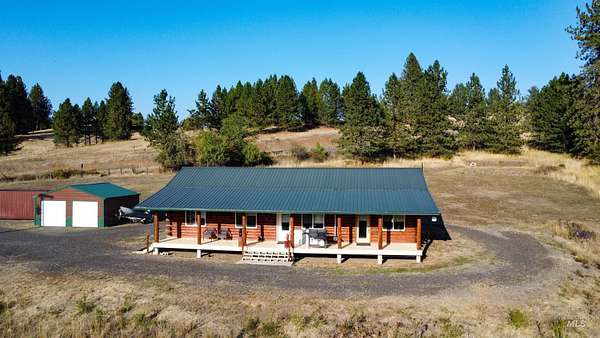 A beautiful log home on almost 9 acres with a newer shop and detached garage. The home has an open floorplan with beautiful tongue and groove walls and ceiling. The 9 acres is mostly usable ground with plenty of space for a few animals or to expand. The large 30x50 shop is insulated and heated with pull through 14ft doors. It's currently set up with very nice gym equipment and a hot tub that can be included with the right offer. The shop also has a 10x50 lean-to with electric hookup for an RV. A 2-car detached garage and a well set up Conex container give you a lot of storage options for vehicles, toys and equipment. A great private well for all your water needs. This property is close to vast swaths of public land and minutes from the Clearwater River and all the fishing and other activities it offers. Relax on your covered porch and enjoy the nature around you, or head down the paved and maintained county road to enjoy the adventures of living in Idaho County.