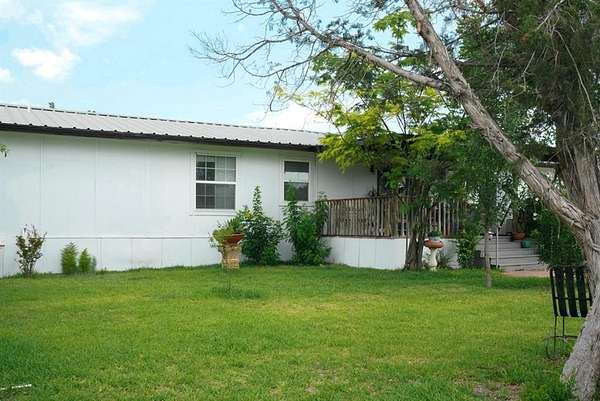 The property features a well-maintained manufactured home set on 1 acre that is fully fenced off from the rest of the ranch--perfect for keeping pets or landscaping safe from livestock. The home boasts a spacious covered front porch and a large deck, ideal for relaxing outdoors while soaking in the panoramic views of the surrounding hills. Healthy grass and mature shade trees surround the home, creating a lush, welcoming environment.